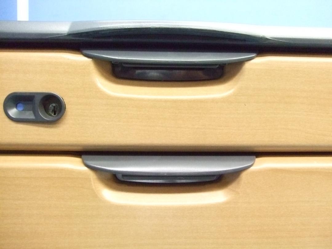 - 一部不具合ありその脇机・ワゴンの本来の効用を果たすための機能以外の一部が使用不可な状態。(例、引出が開閉しづらい、 キャスターロック機能使用不可、ラッチ不良 等がある。)
