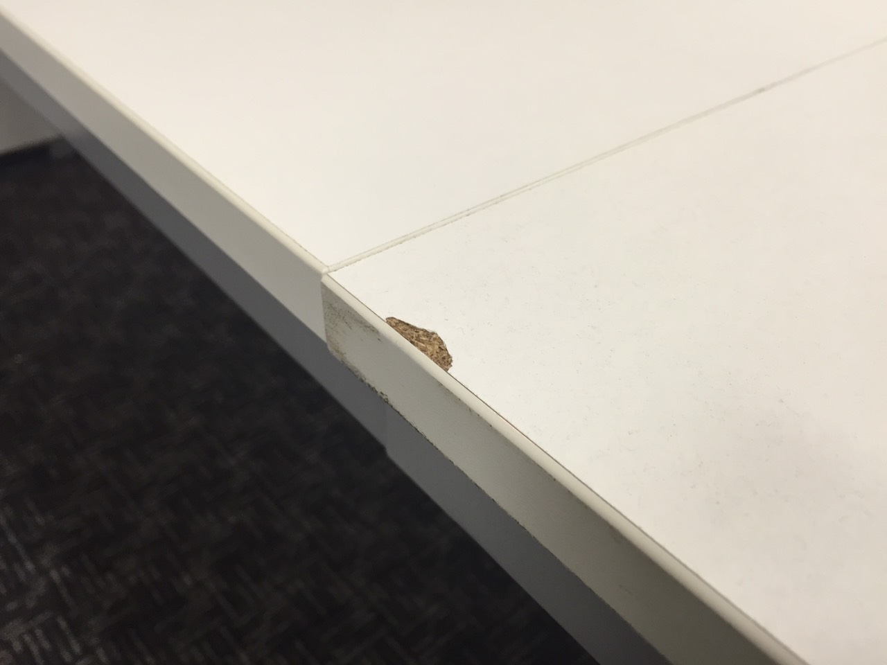- 壊れている天板歪み、アジャスター無し、キャスター使用不可のようにそのテーブルの本来の効用を果たすための機能に不具合がある。