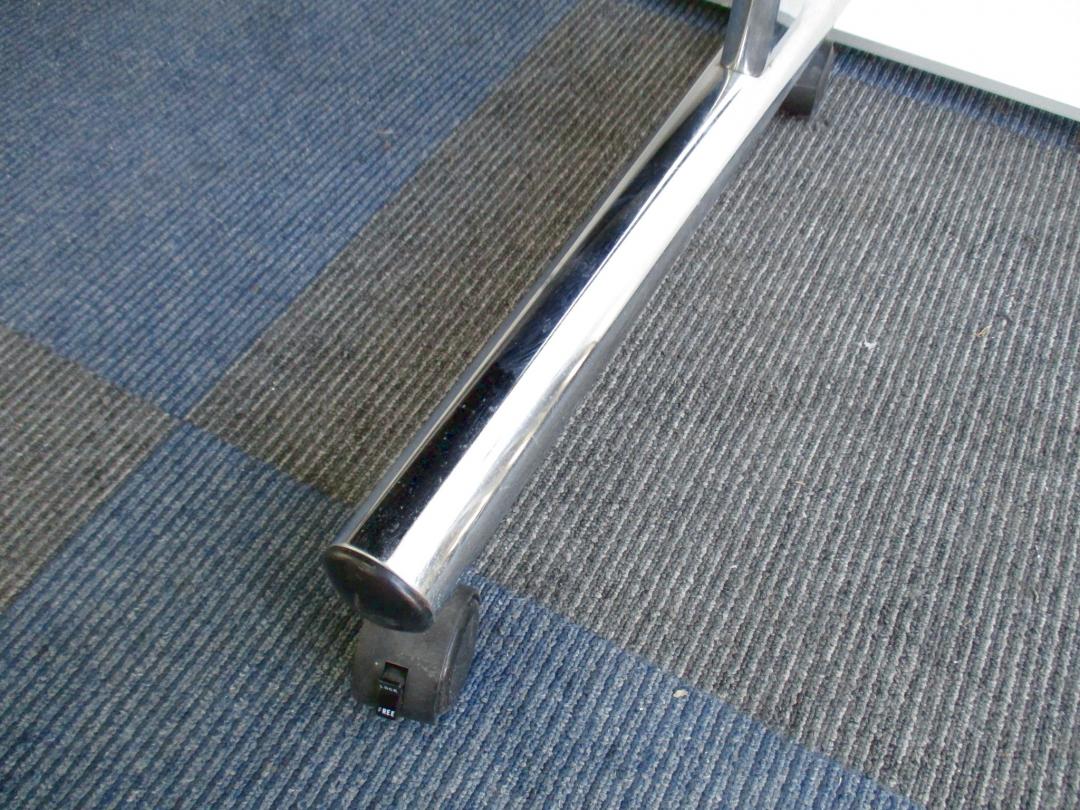 - 一部不具合あり天板歪み、アジャスター無し、キャスター使用不可ようなそのテーブルの本来の効用を果たすための機能以外の一部が使用不可な状態。(例、キャスターロッ ク機能使用不可、棚板無し等がある。)