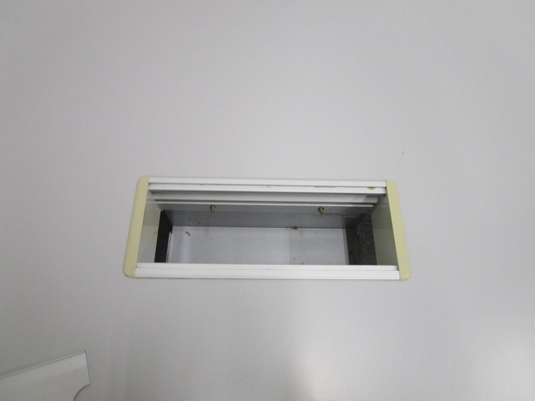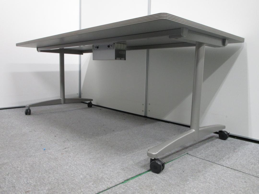【2台入荷!】幅1800 奥行き900 ミーティングテーブル T字脚キャスター脚タイプ 配線ユニットつき ペールグレーカラー【中古会議用テーブル】- 池袋店