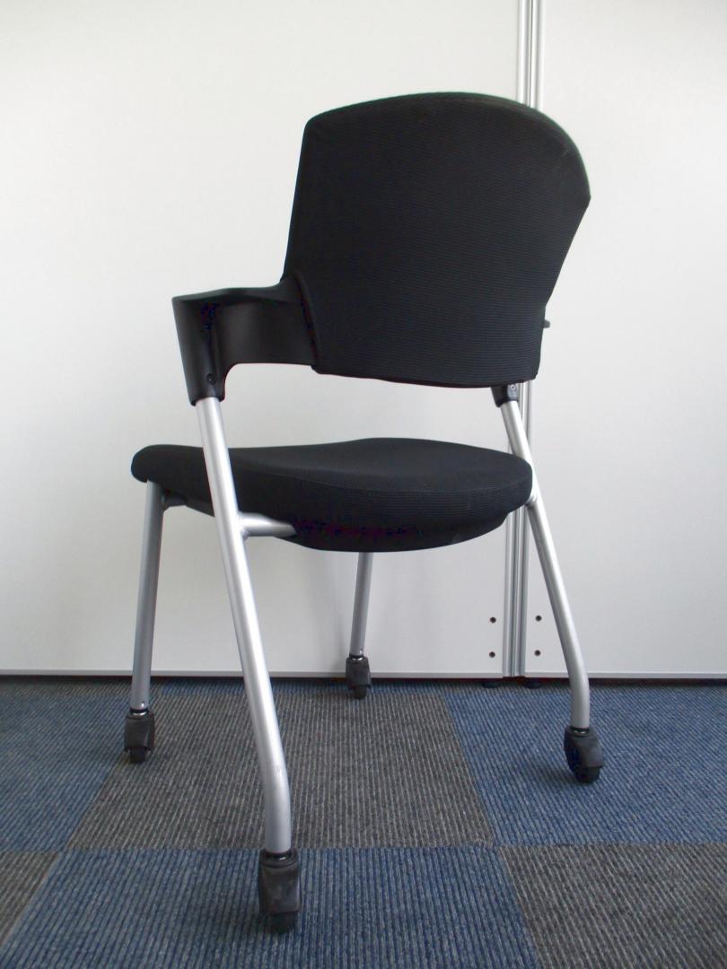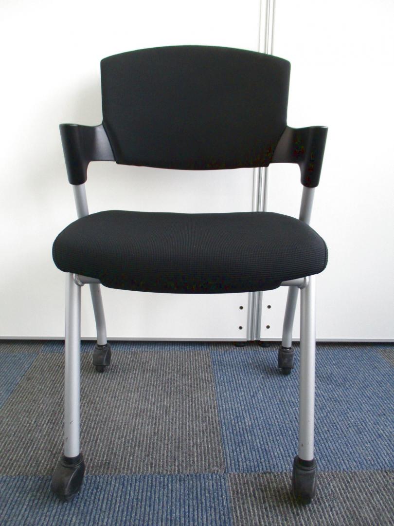 【シンプルスマートなスタッキングチェア!分厚いクッションで長時間でも快適な座り心地!】■スタッキングチェア 肘付ミーティングチェア ■固定肘 ■キャスター付 ■ブラック ■背面樹脂/コクヨ(KOKUYO/プロッティ