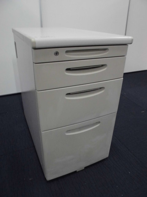 【珍しい4段引出タイプ】オカムラ製|脇机/袖机| デスクを広々延長ご利用できます!【鍵付】- 立川・八王子店