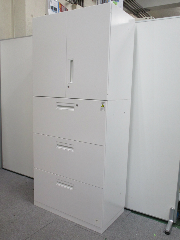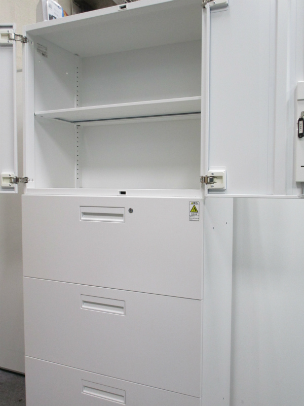 【4台入荷!状態良好】エディアシリーズ ホワイト書庫セット 上段両開き 下段3段ラテラル 幅800 高さ1800タイプ【中古オフィス家具】- 池袋店