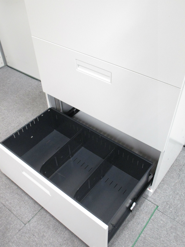 - 両開きタイプは扉が180度開き、通路の邪魔になりません。ラテラルタイプは引出しが限界まで出せ、出し入れ楽々。