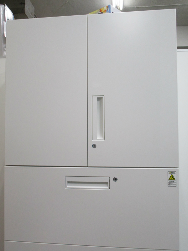 【両開き書庫とクリスタルトレイキャビネットの上下書庫セットの入荷です】 ■コクヨ/エディア/ホワイト 両開き+クリスタルトレー 深型3列11段 計33段