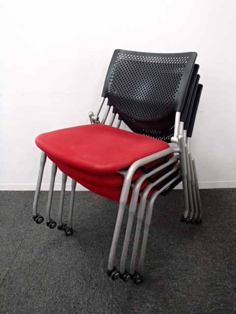 チェアはオカムラ製・プロスタックチェア レッド色です。