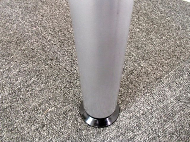 - 一部不具合あり天板歪み、アジャスター無し、キャスター使用不可ようなそのテーブルの本来の効用を果たすための機能以外の一部が使用不可な状態。(例、キャスターロッ ク機能使用不可、棚板無し等がある。)