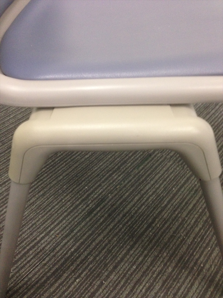 - あり黄ばみ・変色が広い範囲にうっすらある、または濃い黄ばみ・変色が一部ある。(例、座面・背もたれ、脚部等にある。)