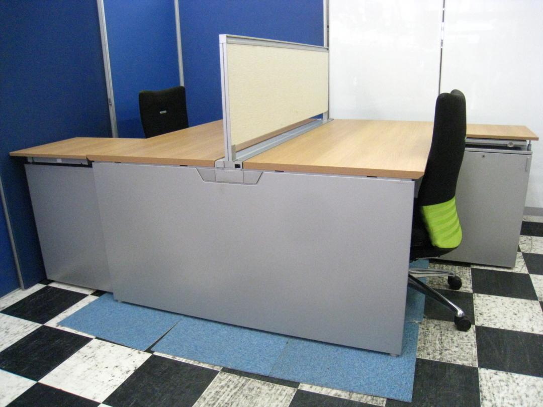 【2名でお仕事】幅広い1400mmのフリーアドレスデスク■デスクトップパネル付き■天板付きサイドワゴン■チェア【お買い得セット】- 埼玉本店