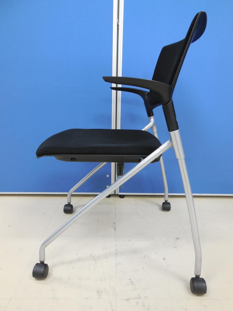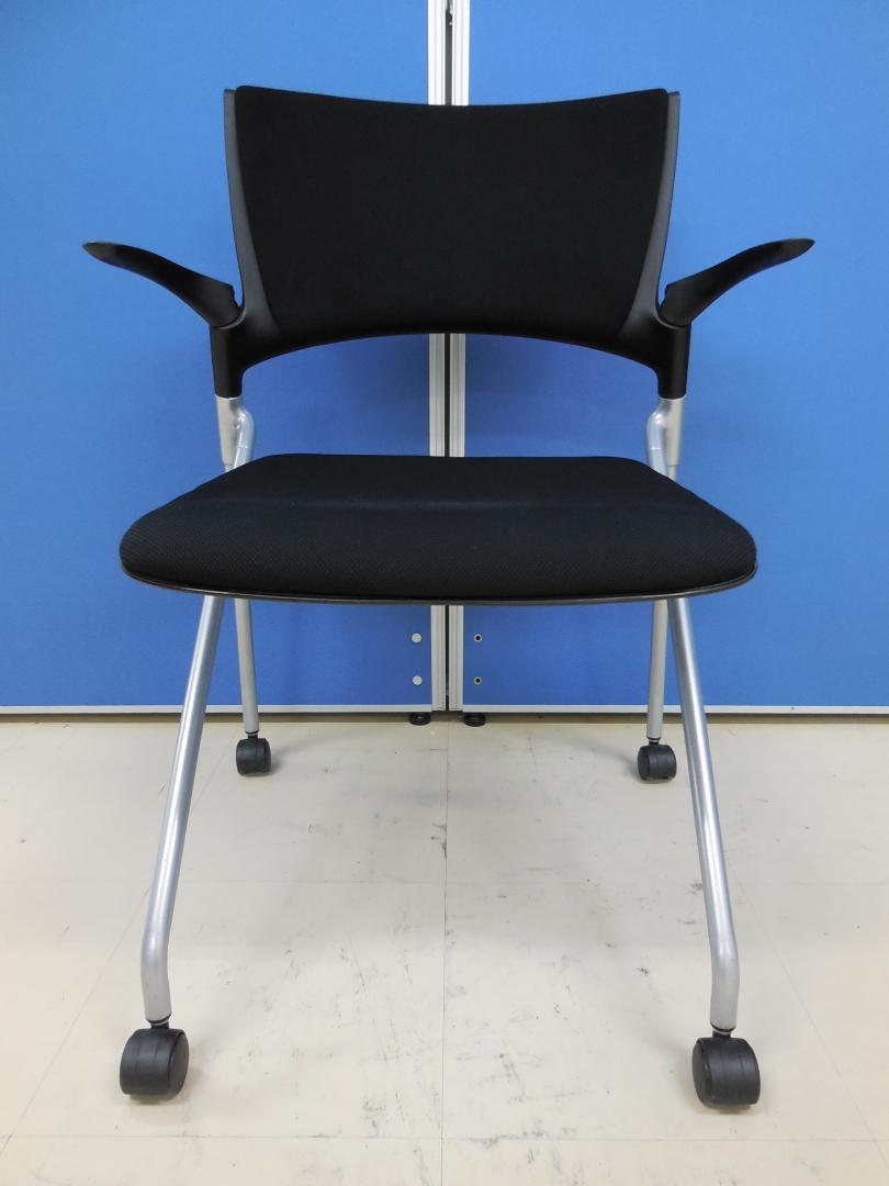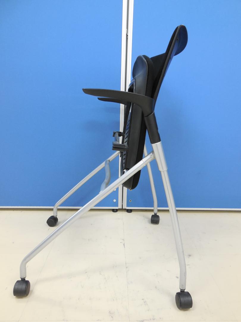 【8脚⇒残り4脚!】イトーキ製 マノス(MANOSS)チェア 肘付き ■人気のブラックカラー■座面を跳ね上げて、スペース効率のよい収納を!【ネスタブル】- 足立・葛飾店