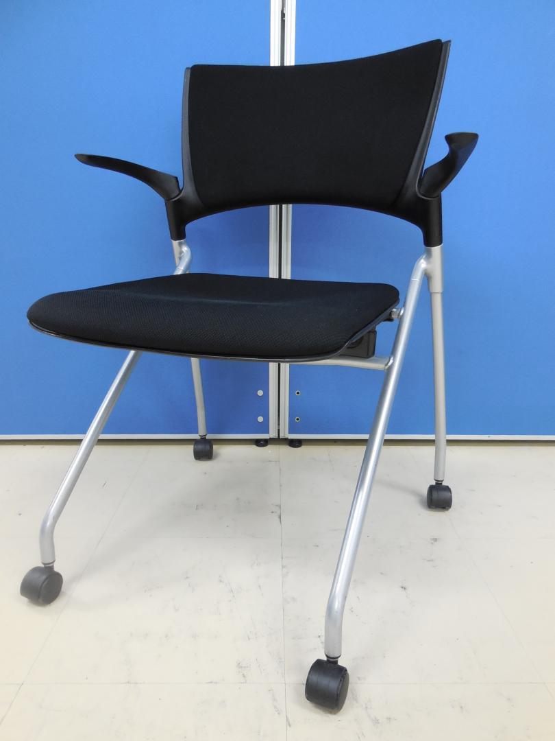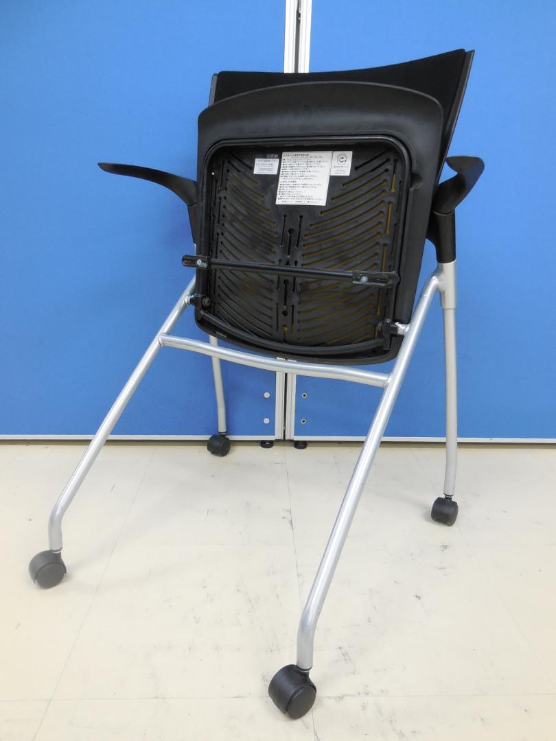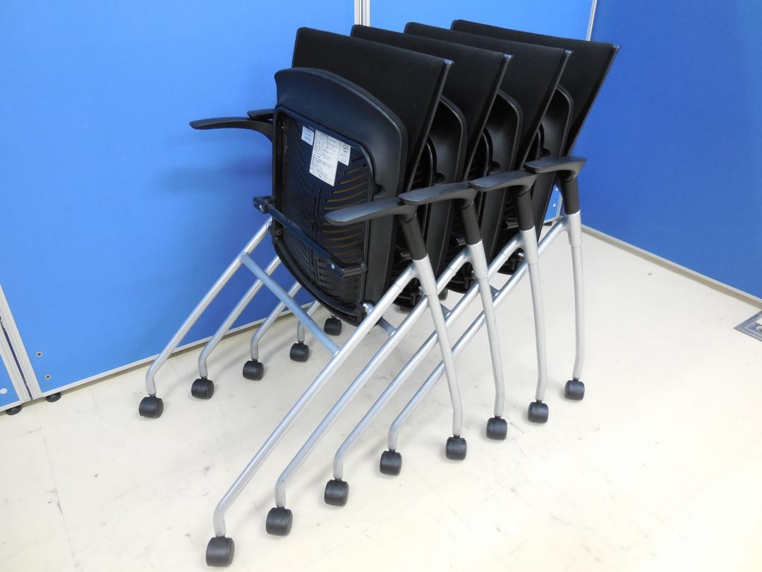 【4脚セット商品!】イトーキ製 マノス(MANOSS)チェア 肘付き ■オールブラックがカッコいい!!■軽量で簡易チェアをお探しのお客様、是非こちらを!【ネスタブル】- 足立・葛飾店