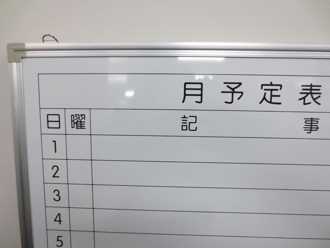 定番と言える月間予定表入りのタイプの壁掛けホワイトボードです。
