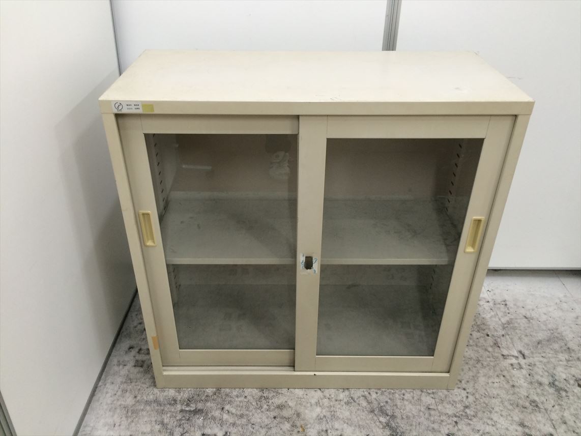 1台限り ガラス引違書庫 カギ部分破損あり おつとめ品- 名古屋本店