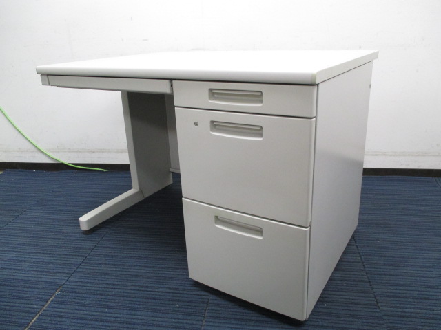 【スタンダードなデザインで高品質・コンパクトなサイズ感!収納力を備えたキャビネット一体型の片袖スチールデスク 】■コクヨ(KOKUYO)製 BS+シリーズ 片袖デスク W1000×D700mm ■シリンダー錠 ■ニューグレー ※日焼け有