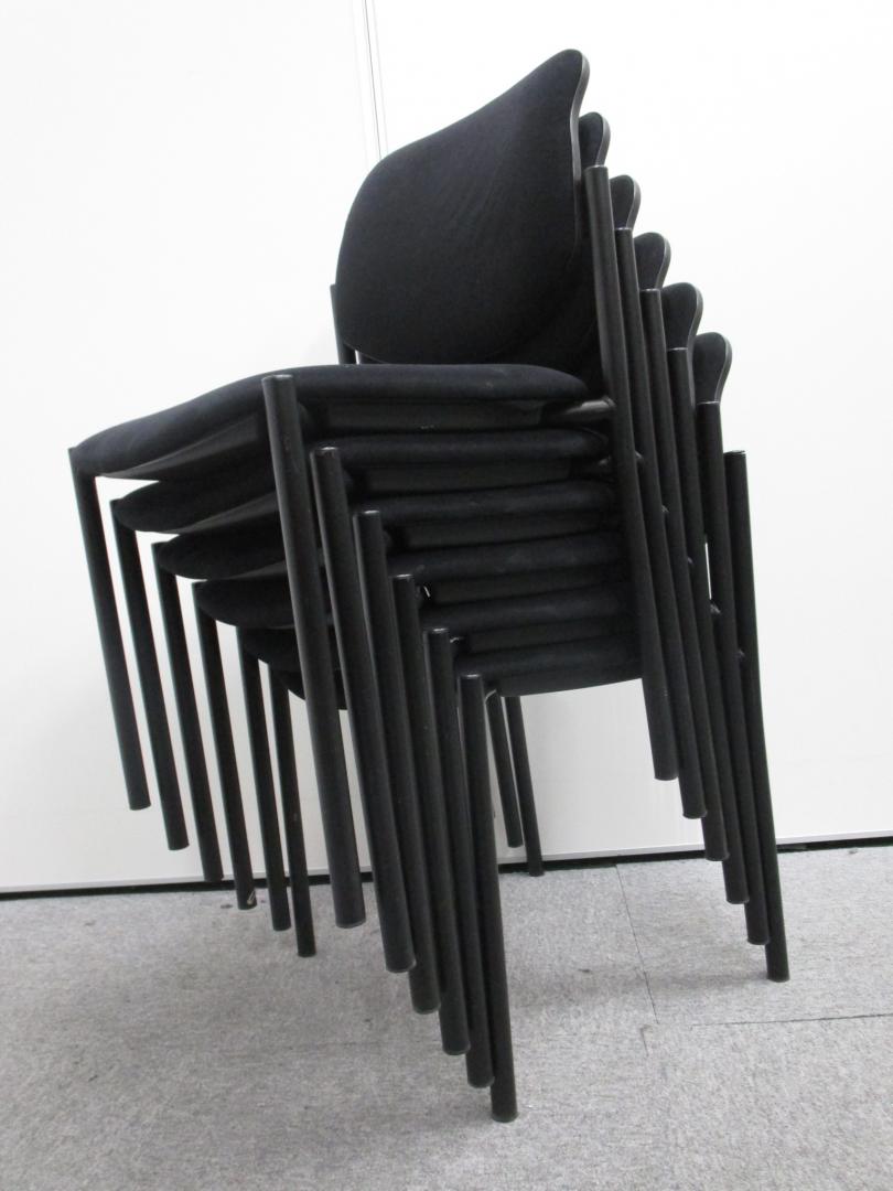 【6脚セット】【特別価格】スタックチェア 垂直スタックタイプ 定番のブラックカラー【中古オフィス家具】- 池袋店