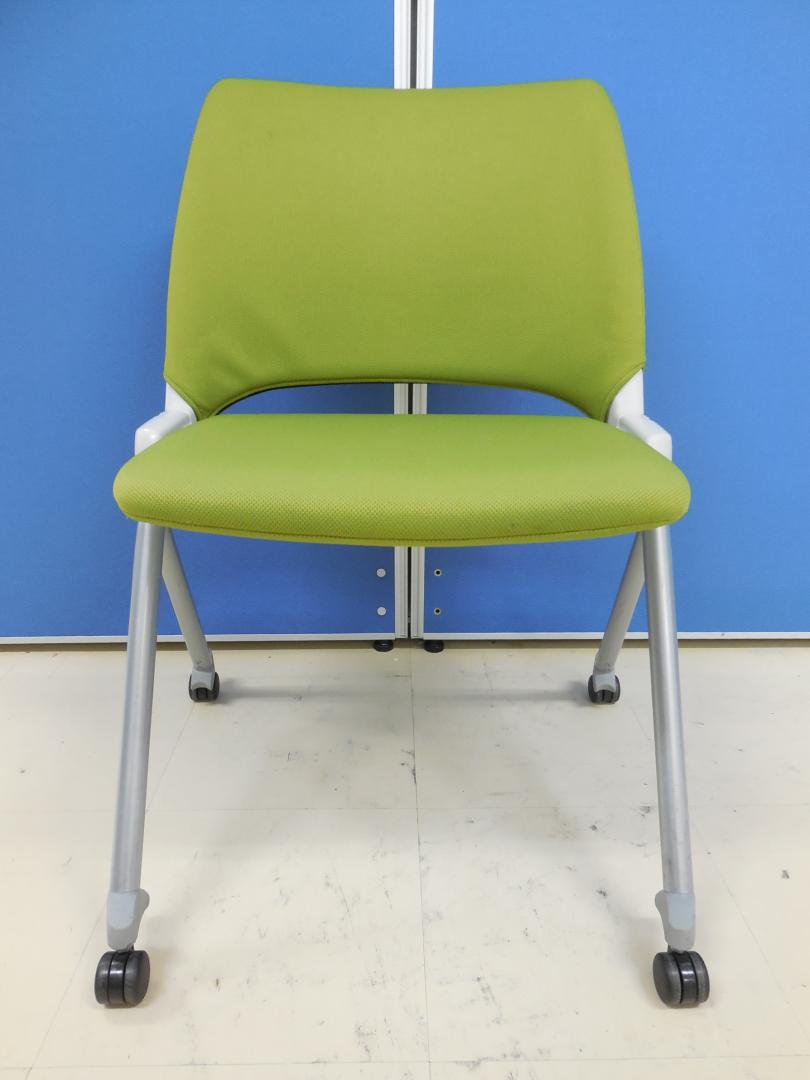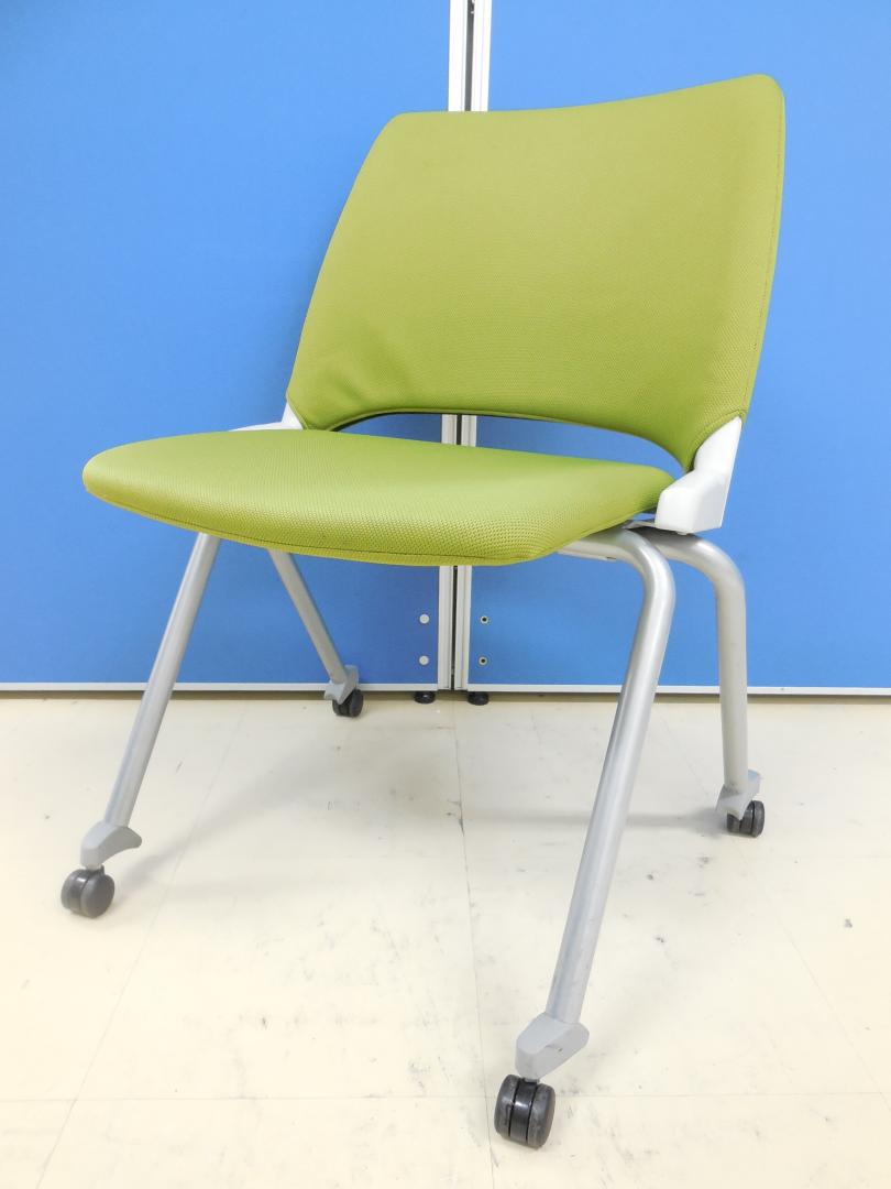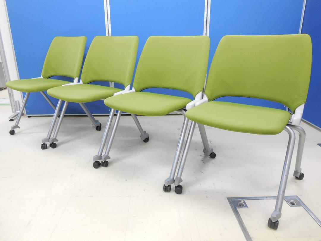 【4脚セット商品!】スタッキングチェア 内田洋行製■垂直・平行と2種類のスタック収納可能です!■やさしいリーフグリーンカラー【ネスティングチェア】- 足立・葛飾店