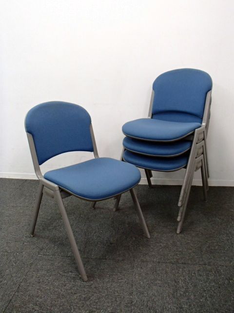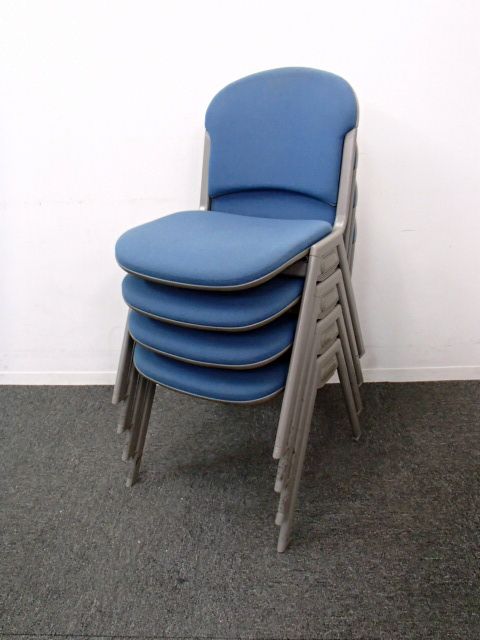 【4脚入荷】【定番商品】会議には欠かせない収納可能なスタッキングチェア|内田洋行製ブルー色- 大阪・堺店