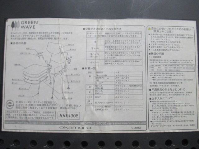 - 不具合なし・部材欠けありそのチェアの本来の効用を果たすための機能以外の一カ所が使用不可の状態にある。(例:背もたれロック不良と奥座調整等の内数カ所)