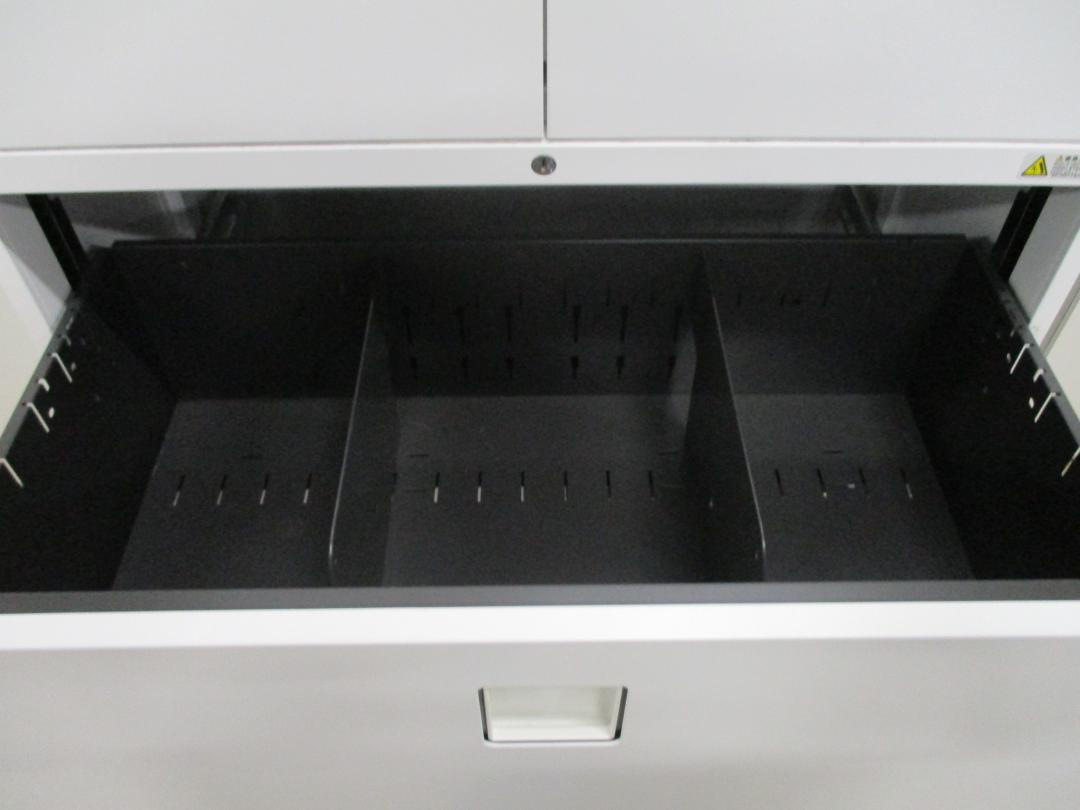 - 一部不具合ありそ引出の開閉不可、施錠不可、棚板無しといったの書庫の本来の効用を果たすための機能以外の一部が使用不可(例、扉、引出の開閉がしづらいなどがある。 )