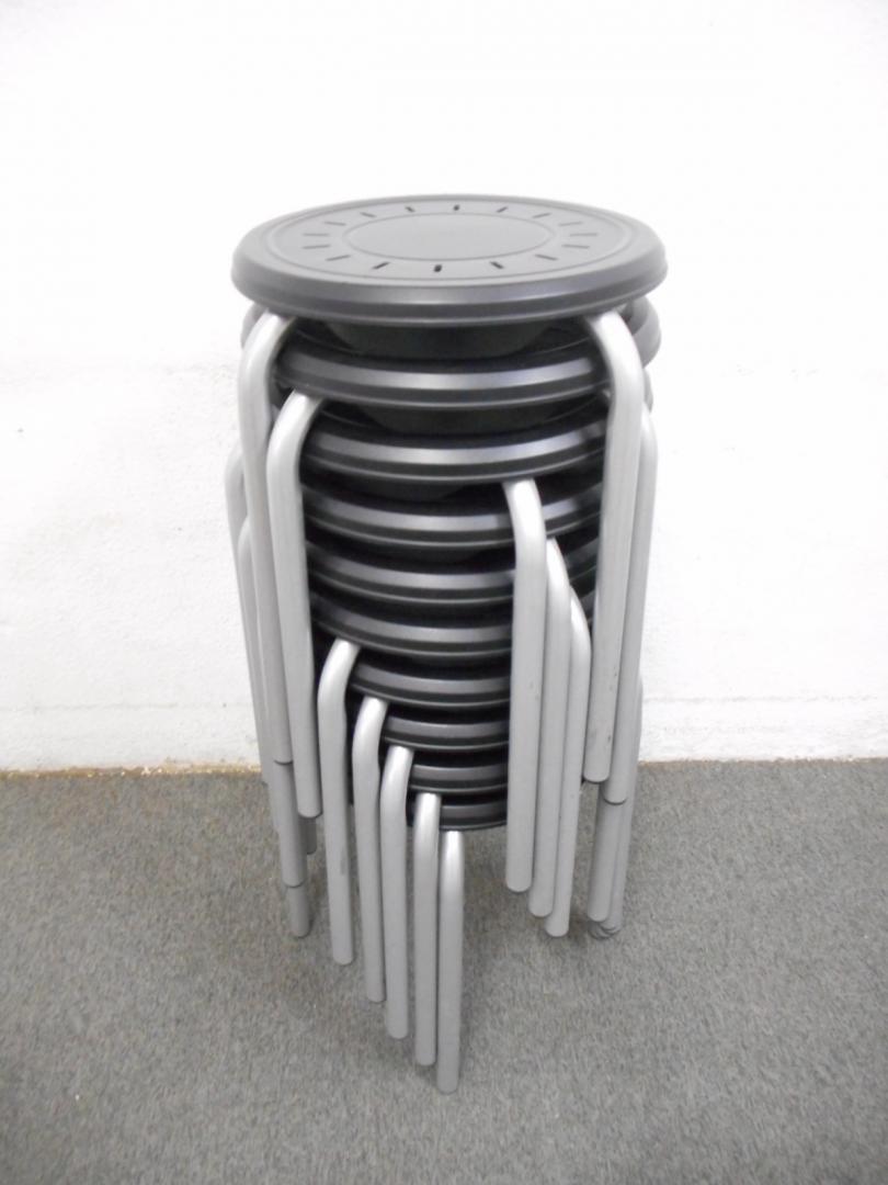 【まとめて10脚セット】■丸イス・ブラック【使い方いろいろ】 ■オカムラ製・スタッキングスツール【セット商品】- 在庫数