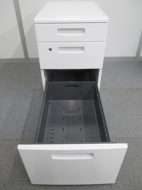 3段の引出しで、文房具・備品・ファイル書類とフレキシブルに収納できます。