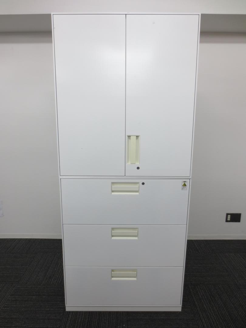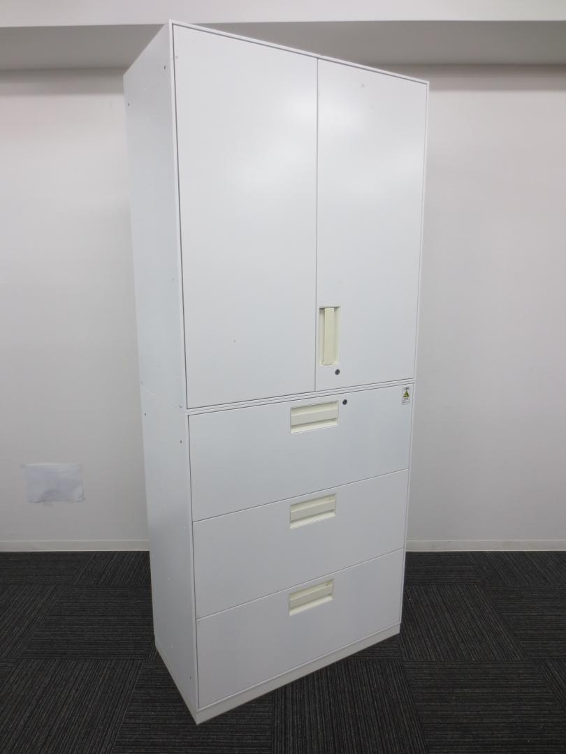 【清潔感のあるホワイト書庫が大量入荷&状態良好】■コクヨ製 ■ユニフレックス ■カラー:人気のホワイト 上置:両開き 下置:3段ラテラル- 春日部・越谷店