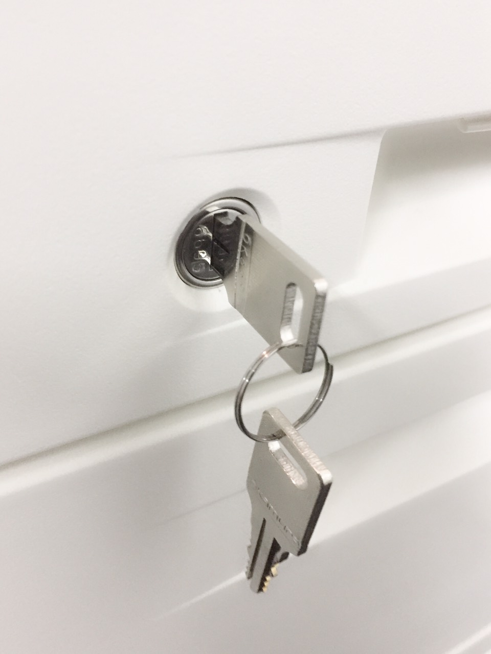 - 一部不具合ありその脇机・ワゴンの本来の効用を果たすための機能以外の一部が使用不可な状態。(例、引出が開閉しづらい、 キャスターロック機能使用不可、ラッチ不良 等がある。)
