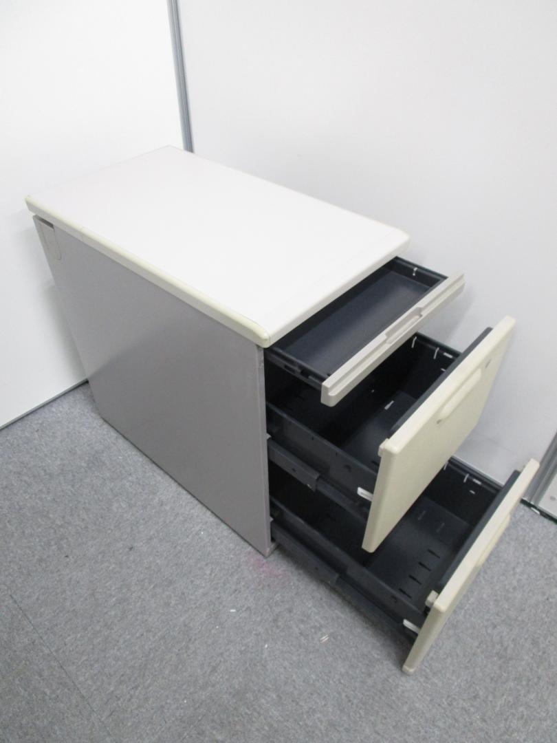 【\8,000⇒\6,000】【10台入荷!】全体的に日焼け御座いますが使用には問題ございません H700 デスク脇収納 A4書類2段収納可能 3段脇机【中古オフィス家具 事務机】【ロット】【おつとめ品】- 池袋店