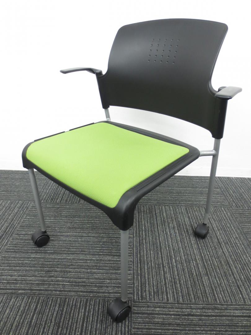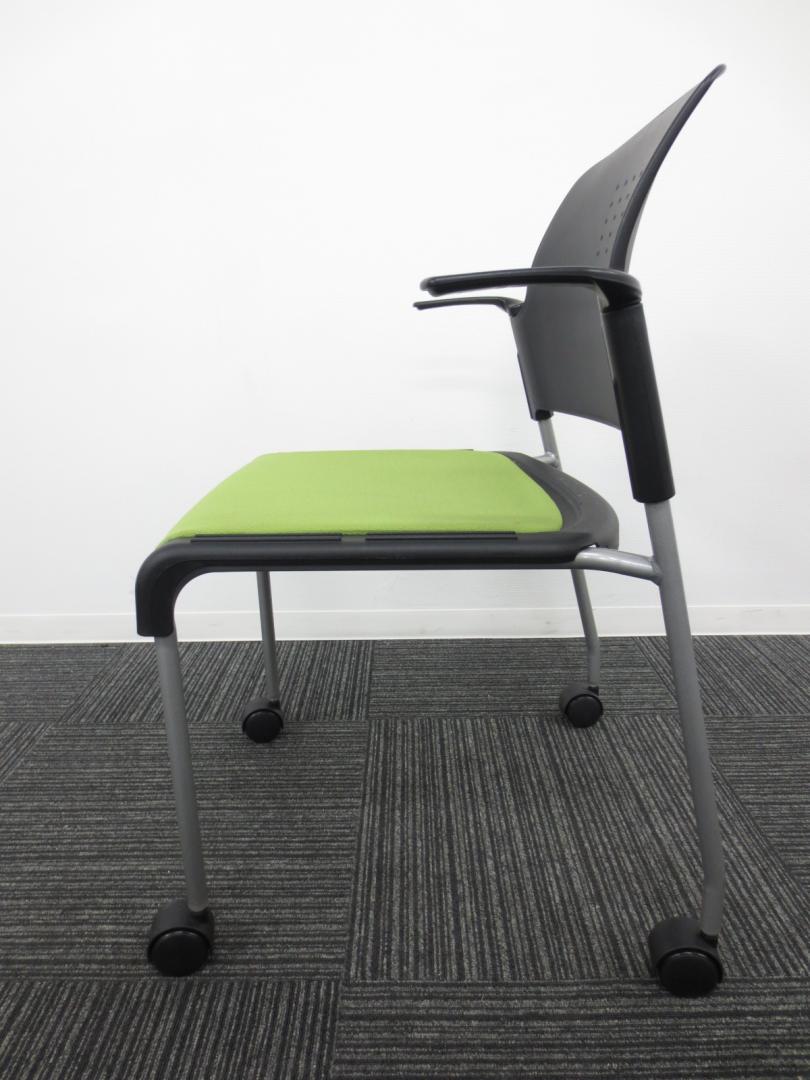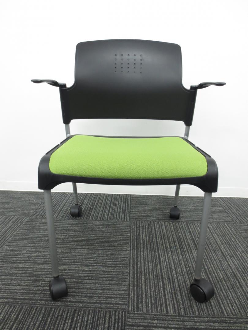 【11脚入荷】【スタッキングチェア】キャスター付き 肘付き ライトグリーン【ミーティングチェア】【相模原・町田店】- 春日部・越谷店