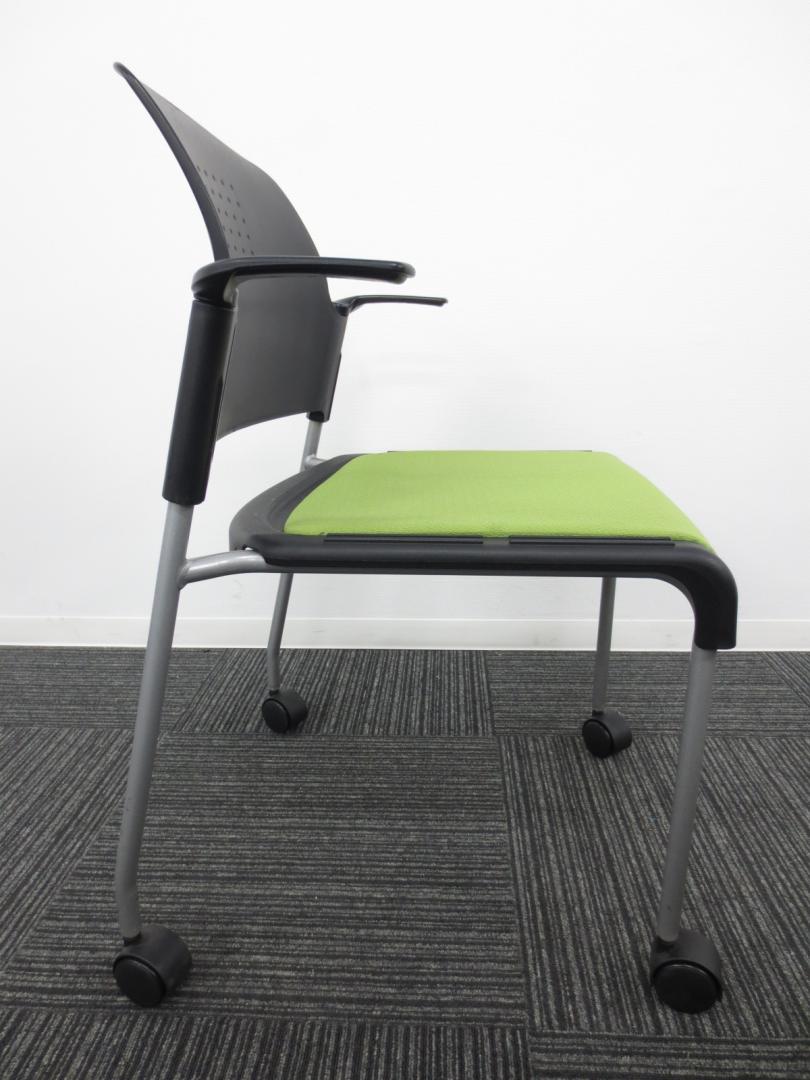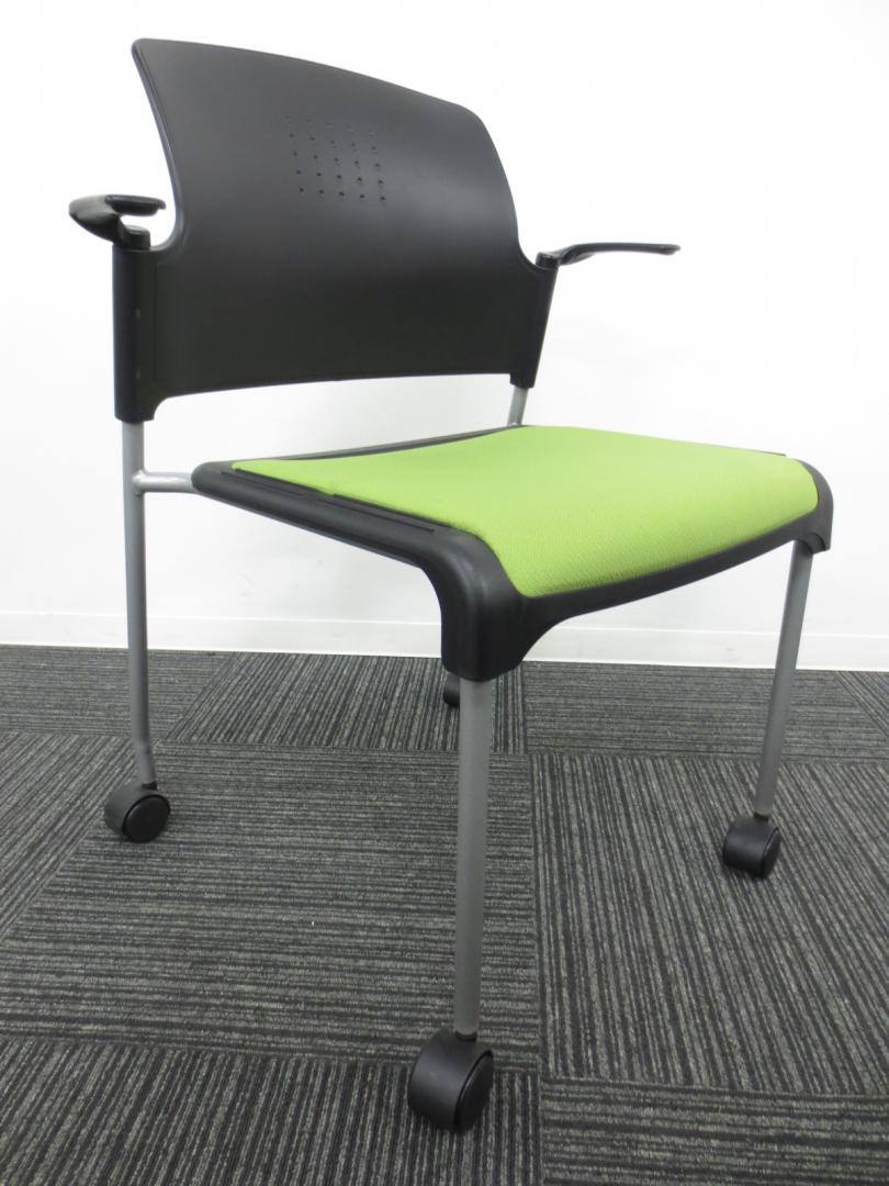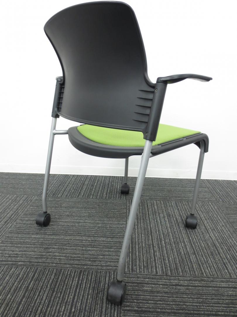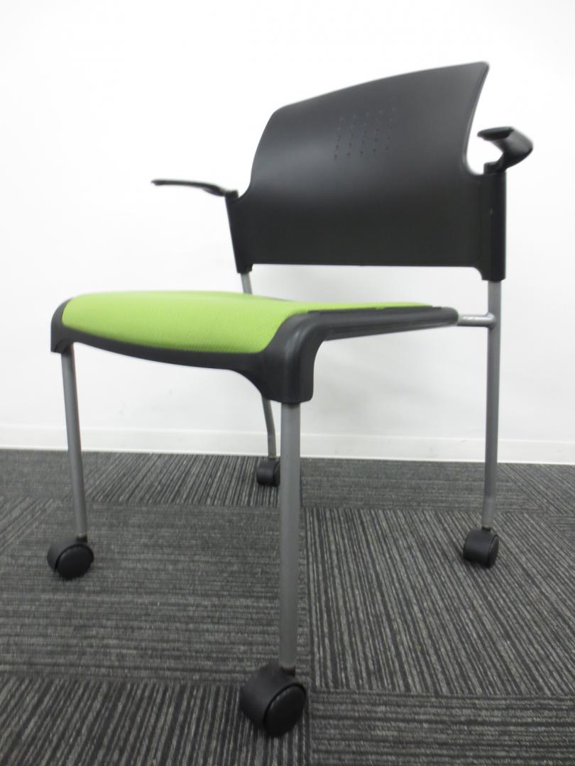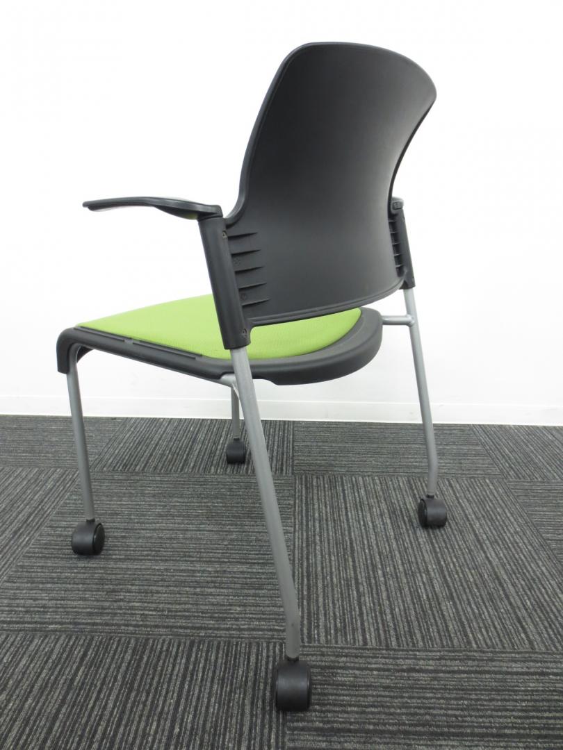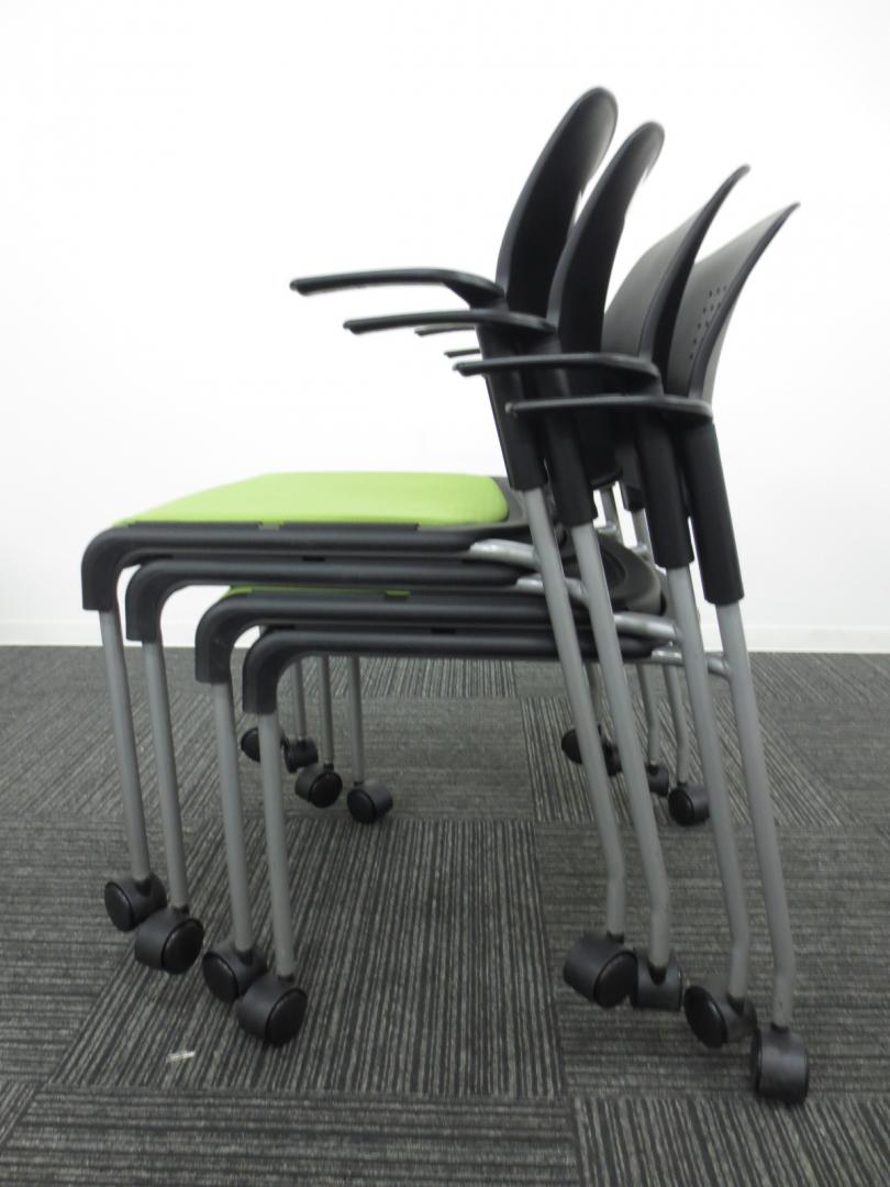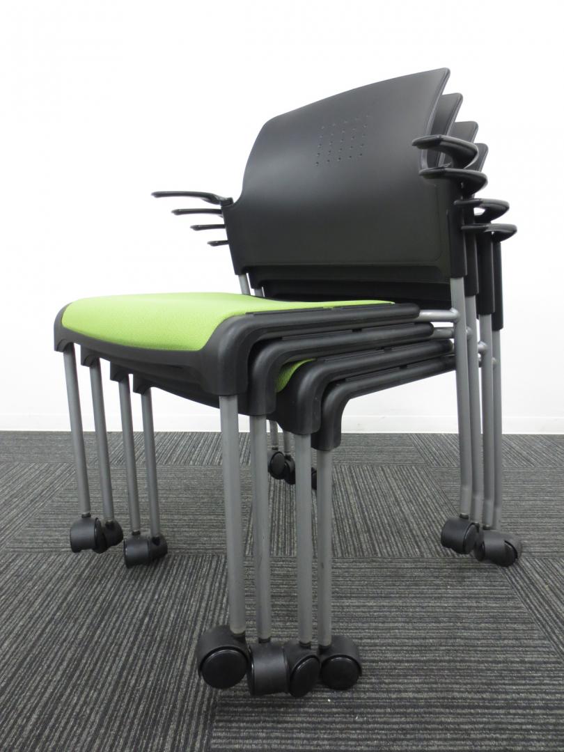 【4脚セット】【スタッキングチェア】キャスター付き 肘付き ライトグリーン【ミーティングチェア】【相模原・町田店】- 春日部・越谷店