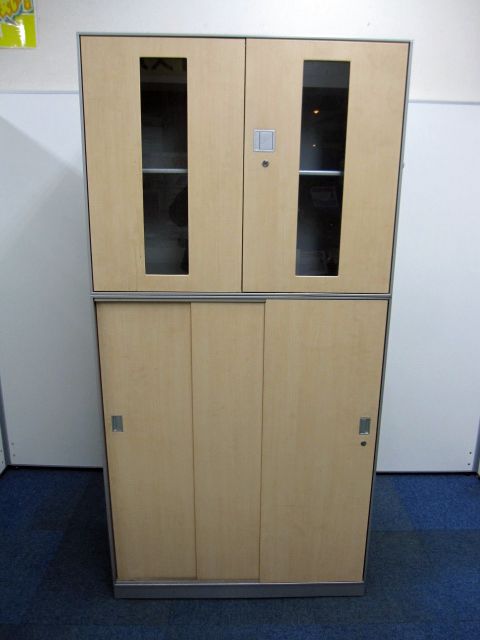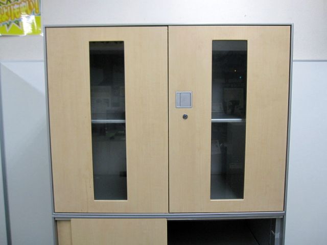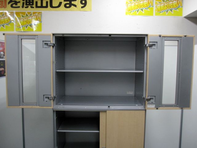 【木目調】コクヨ製の書庫セット(両開き×3枚引き違い)【鍵付き】- 品川・三田店