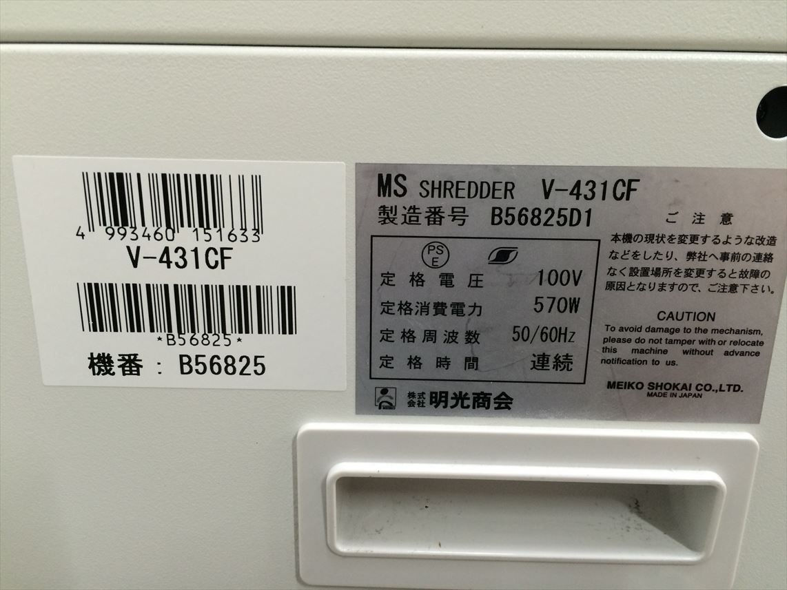 【シュレッダー入荷】明光商会製 MS V431CF状態について