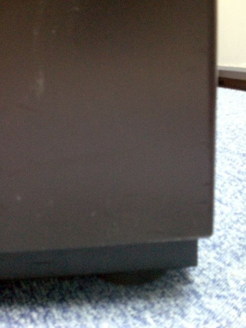- かなり強い濃い黄ばみ・変色が商品全体にある。(例、天板、正面、背後、サイド部分にある。)