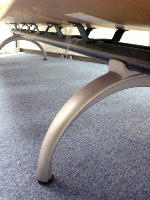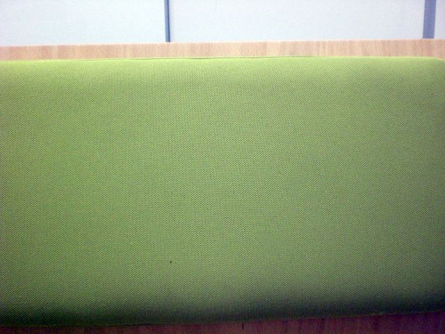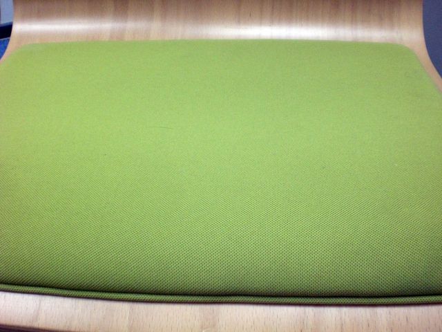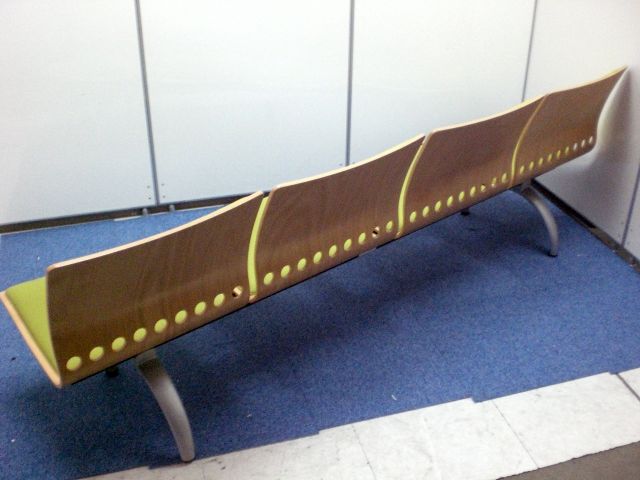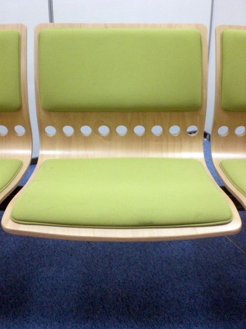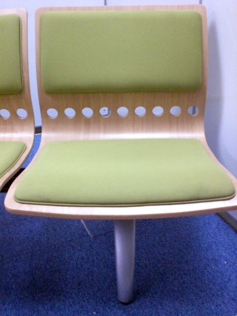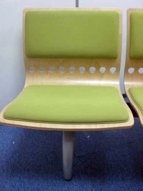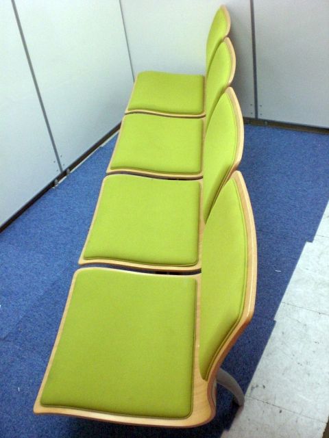 鮮やかなグリーンで曲げ加工も美しいロビーチェアです。