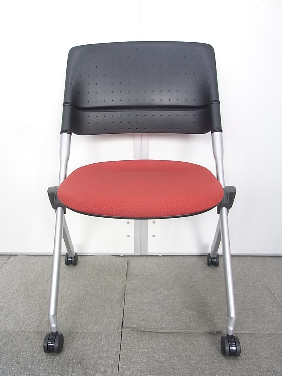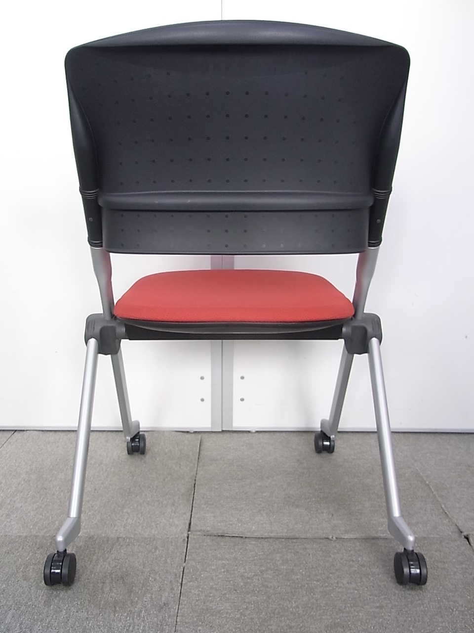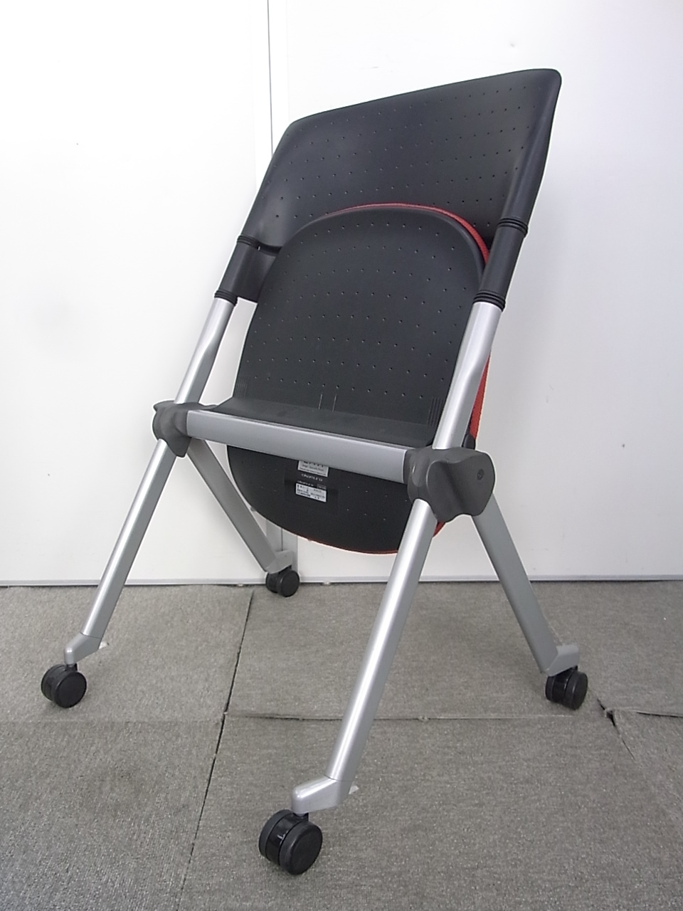 【10脚入荷!】オカムラ製 リータ ブラック×レッド 収納できるスタッキングチェア!ネスティングも可能な便利な会議用チェア!- 在庫数