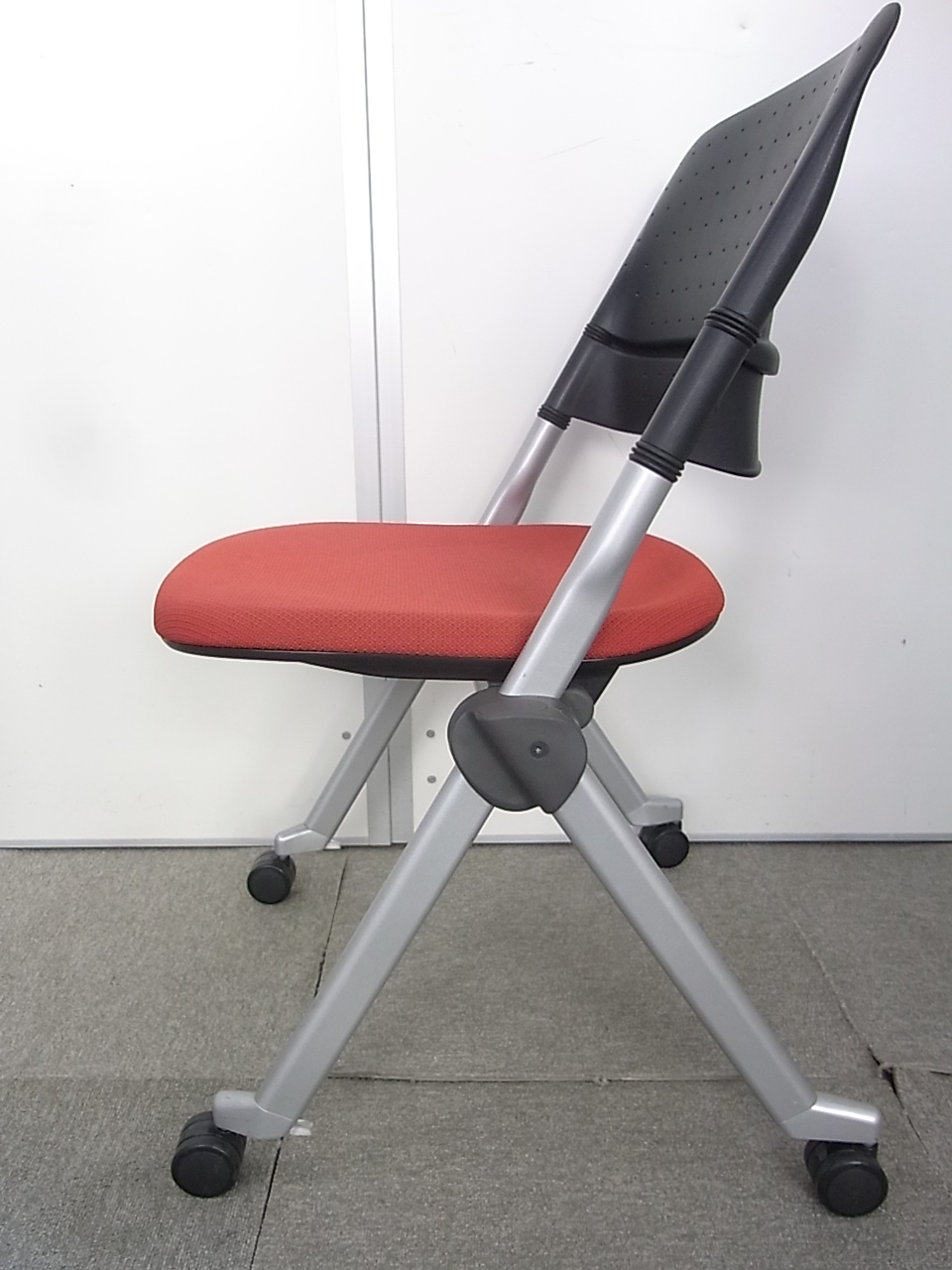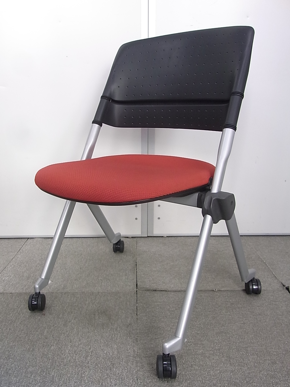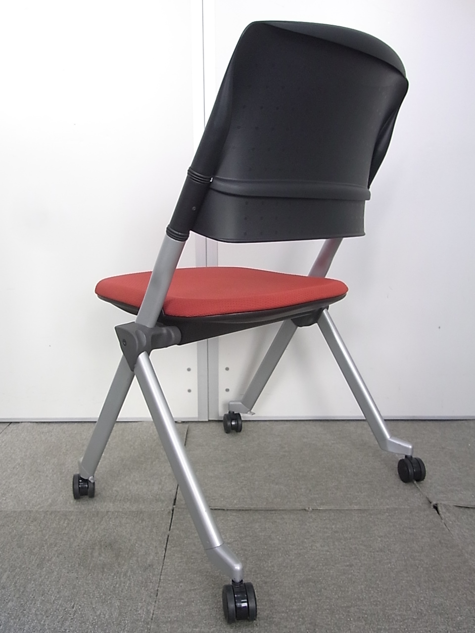 【10脚入荷!】オカムラ製 リータ ブラック×レッド 収納できるスタッキングチェア!ネスティングも可能な便利な会議用チェア!- 在庫数