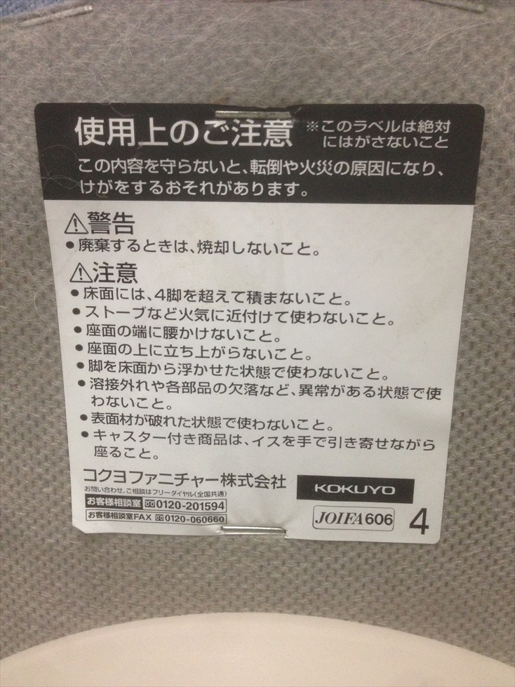 - 不具合多数そのチェアの本来の効用を果たすための機能に不具合ある。(例、オフィスチェアの上下昇降キャスター付きミーティングチェアのキャスター使用不可のような不 具合)