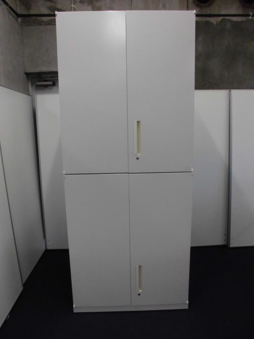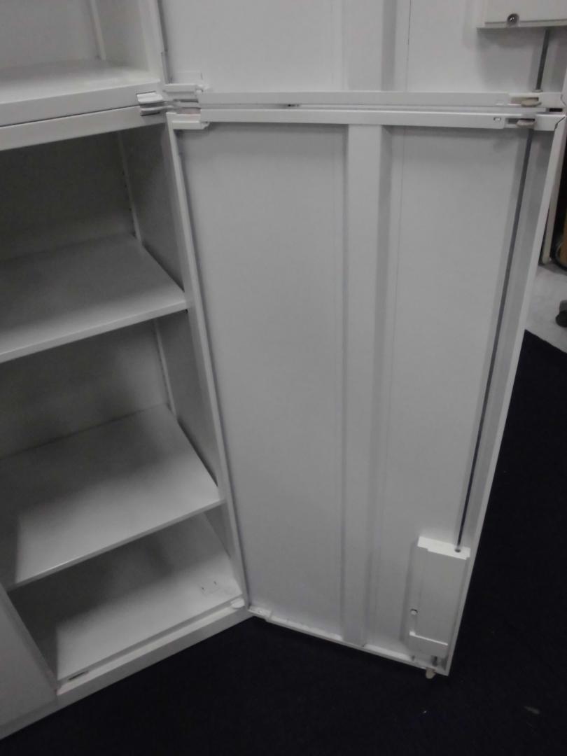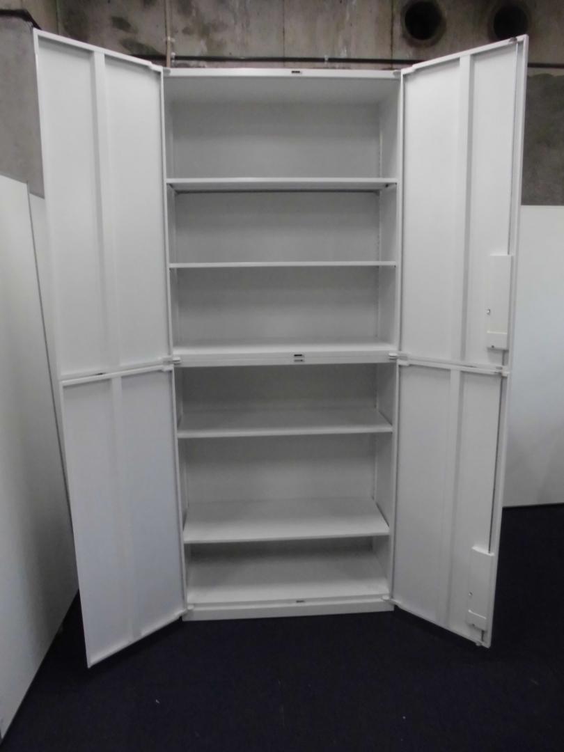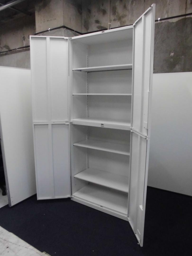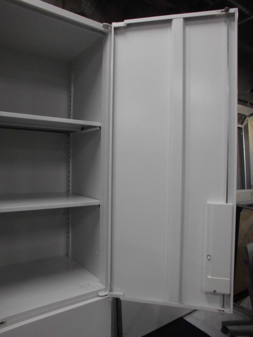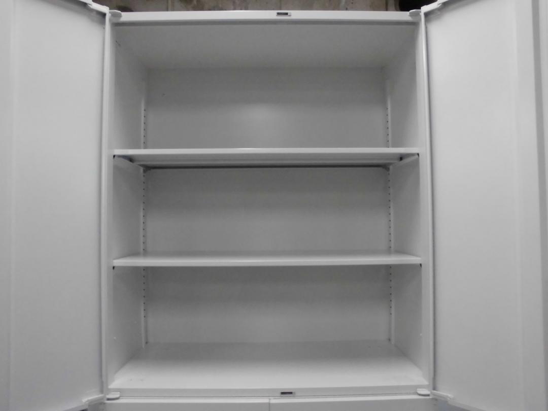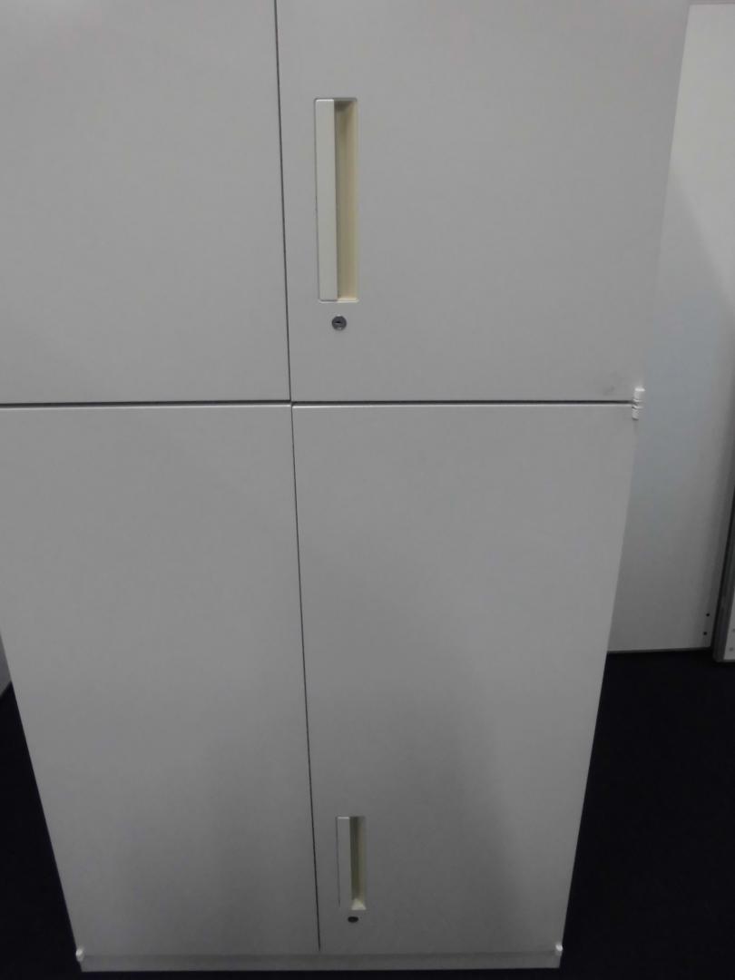 【訳あり50%OFF商品】内田洋行|ハイパーストレージ|書庫セット(上下両開き扉)|ホワイト※注:下段の書庫の取っ手の位置!- 立川・八王子店