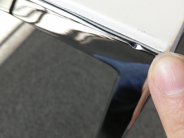 - かなり強い濃い黄ばみ・変色が商品全体にある。(例、座面・背もたれ、脚部等にある。)
