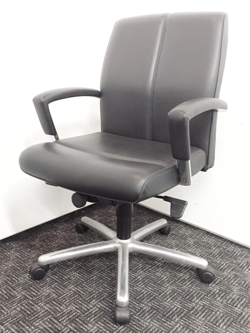 【商品入れ替えの為3月限定値下げ!】【1脚限定】革張りの役員用チェアが入荷!状態も良く、座面背面が非常にキレイ!- 在庫数