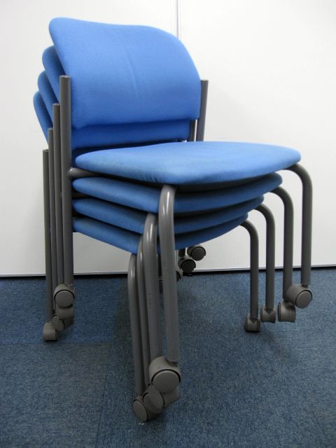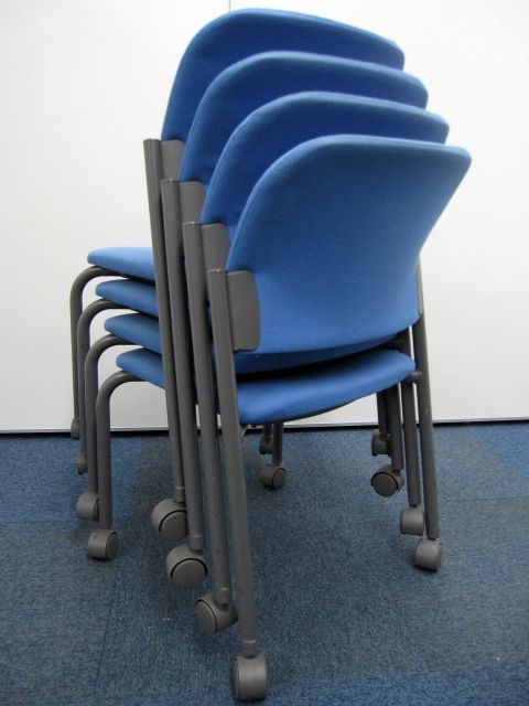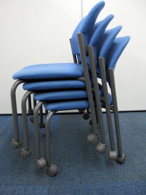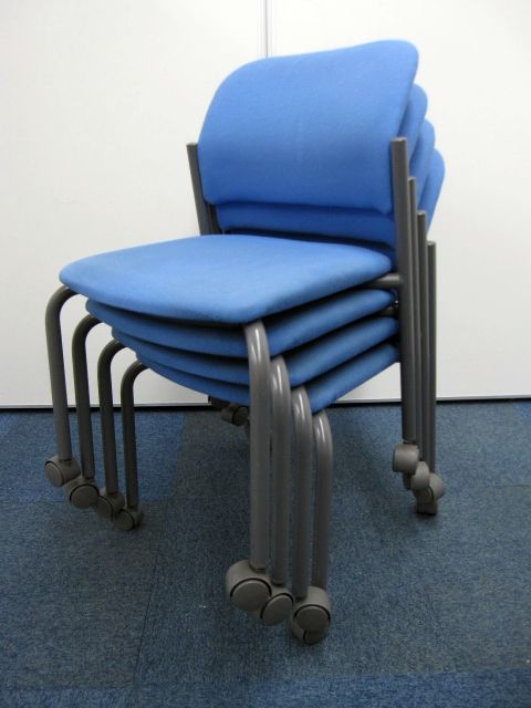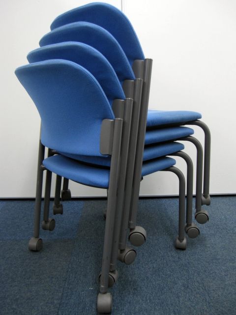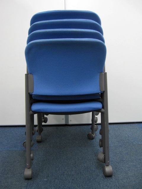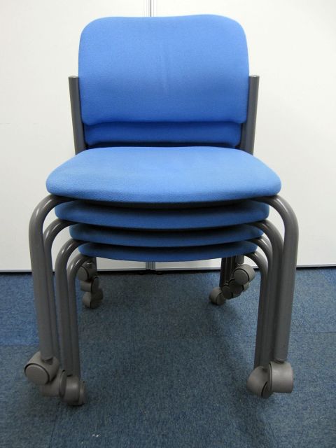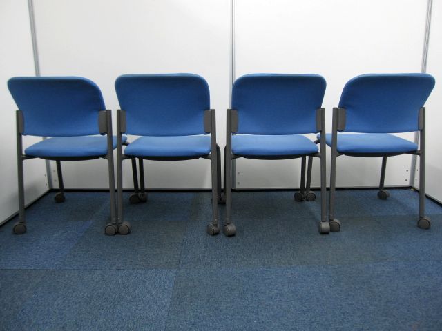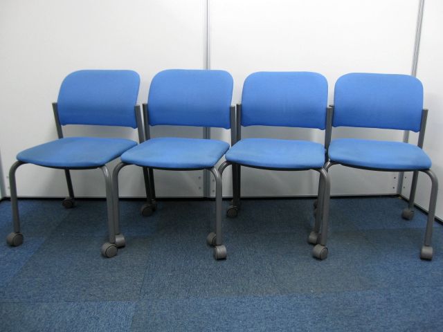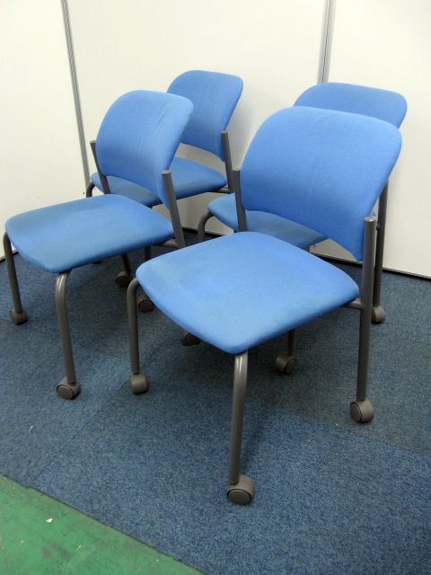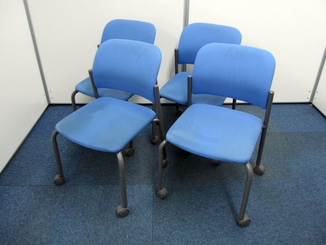 【中古】コクヨ製【スタッキングチェア】キャスター付き【ブルー】【4脚セット】- 品川・三田店