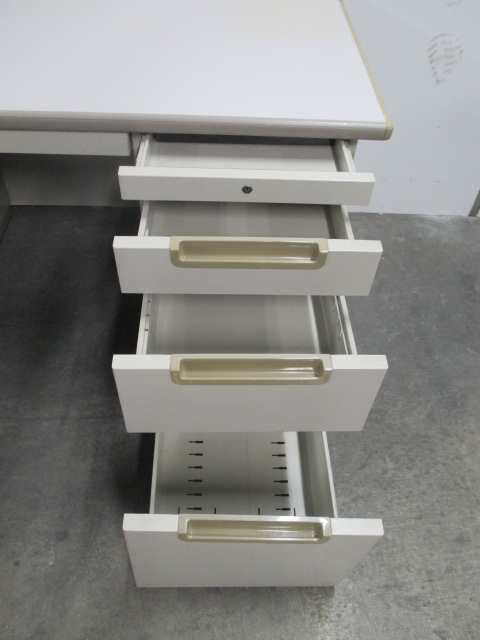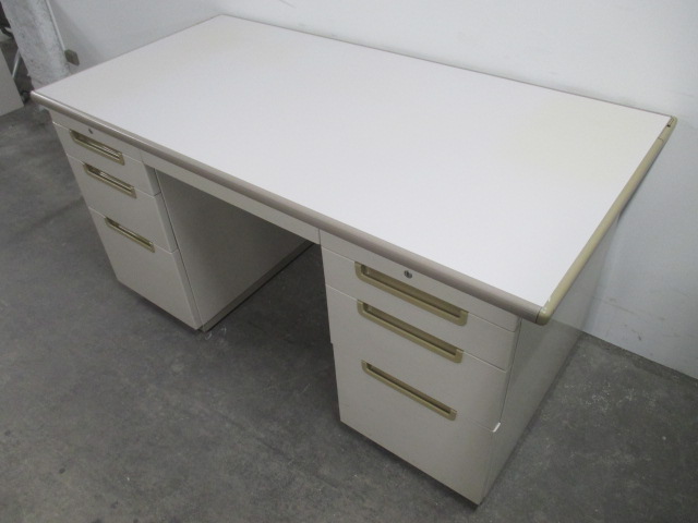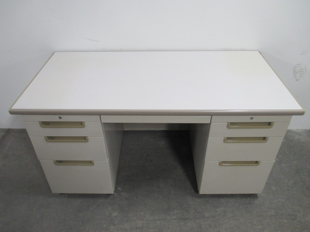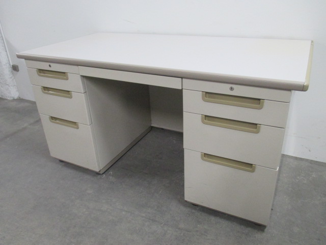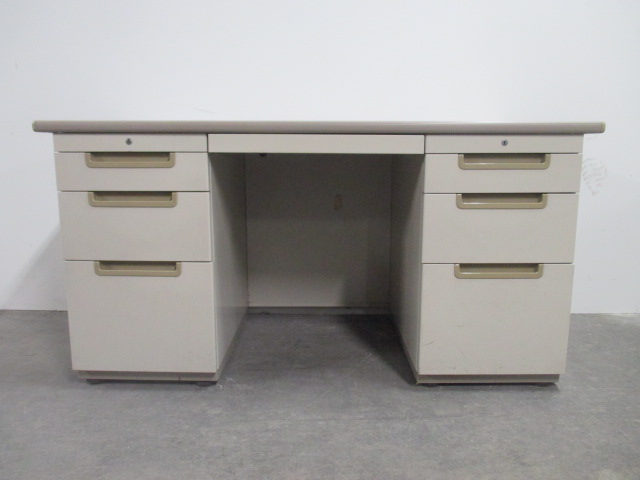 オカムラ製、DBシリーズの幅1400㎜の両袖机になります。