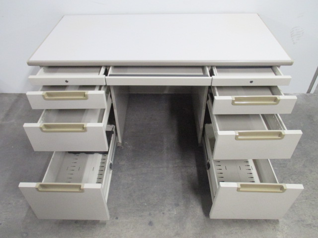 【収納9段タイプ】オカムラ製 両袖机 DBシリーズ【幅1400】- 川崎店