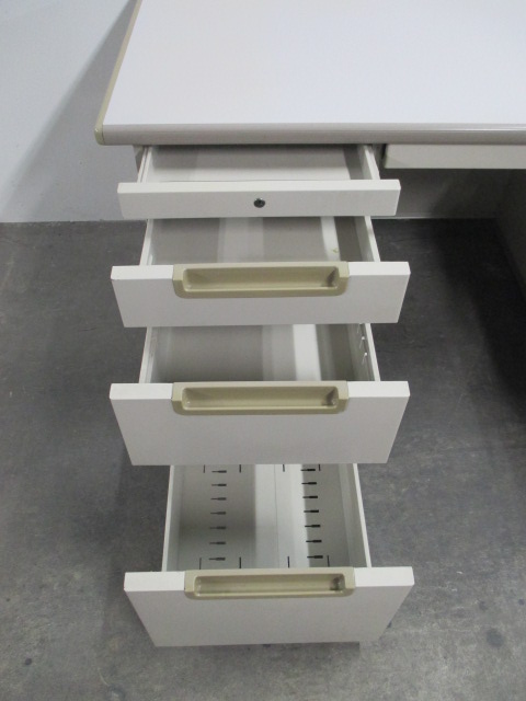 広々とした倉庫スペースに豊富な在庫がございます。オフィス家具が中古で一式そろいます!