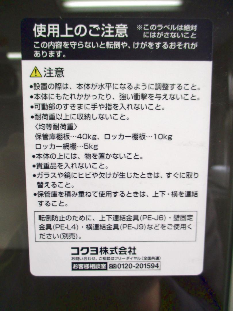 - 一部不具合ありそ引出の開閉不可、施錠不可、棚板無しといったの書庫の本来の効用を果たすための機能以外の一部が使用不可(例、扉、引出の開閉がしづらいなどがある。 )