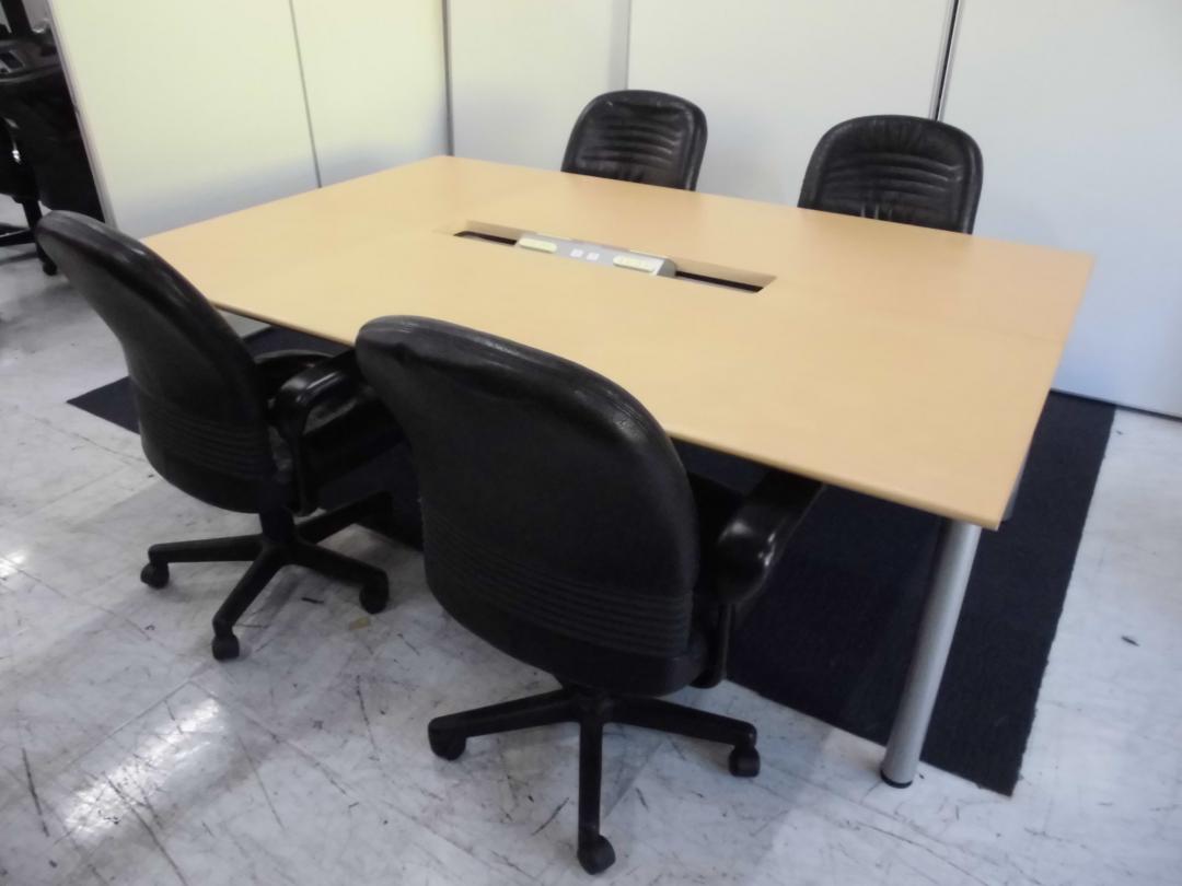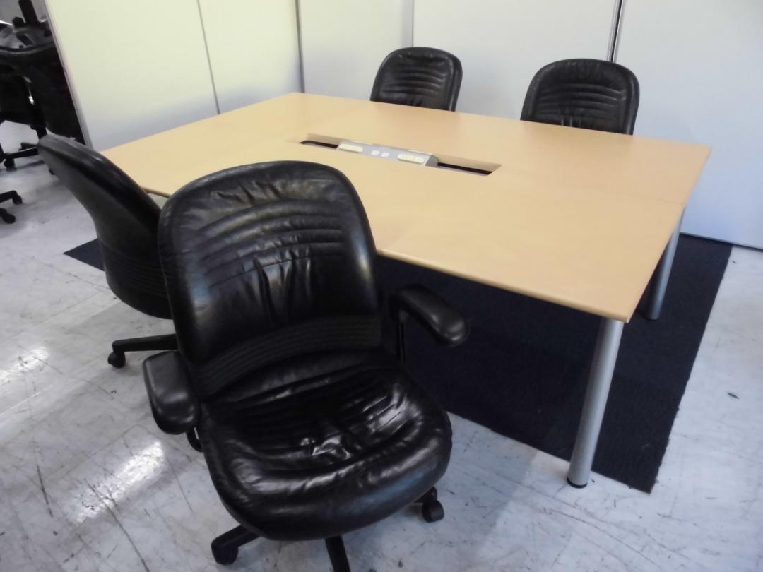 【W2100×D1400ナチュラル天板】ミーティングテーブル+エグゼクティブチェア4脚セット【応接&会議のスペシャルセット】- 立川・八王子店