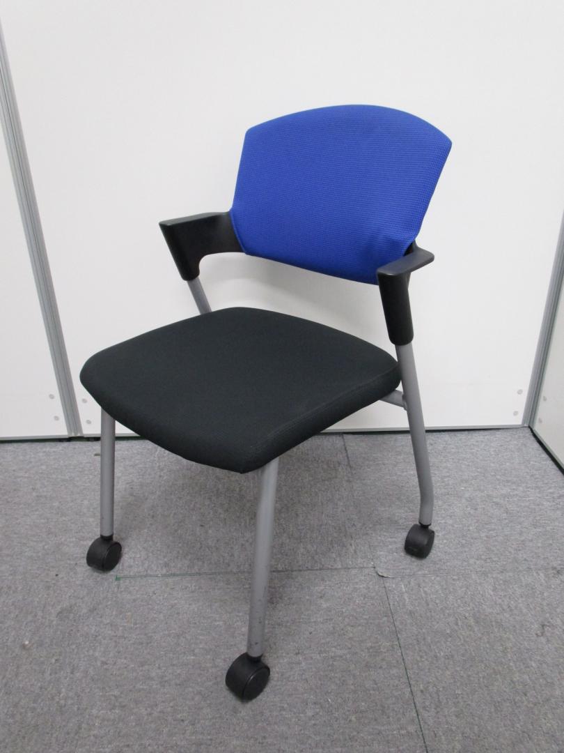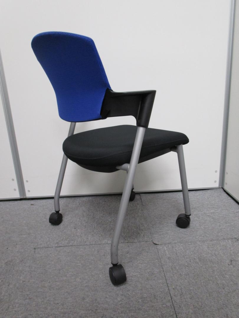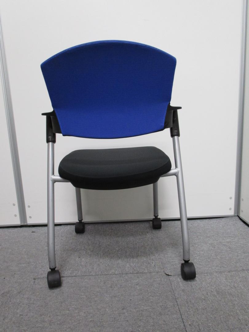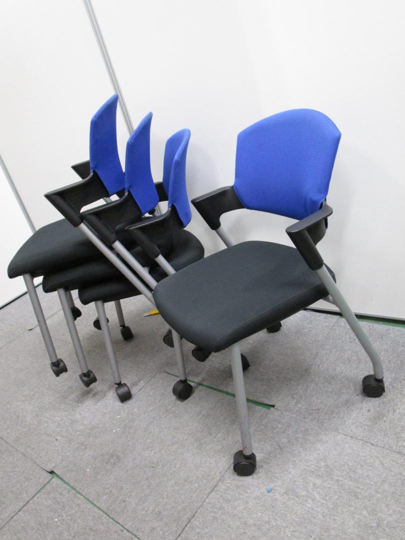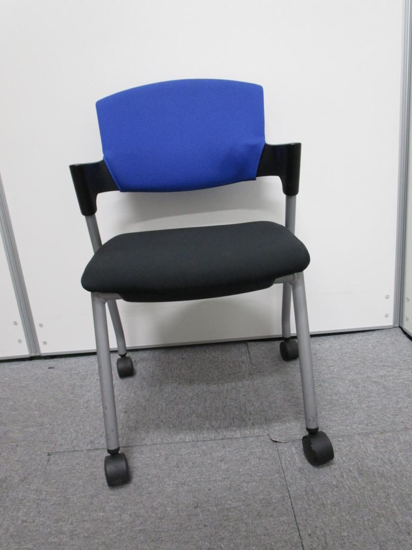 【セット割引・通常価格20,000円を10%OFF!】【コクヨ製プロッティ】テーブル用スタックチェア ブルー&ブラック キャスター付- 池袋店