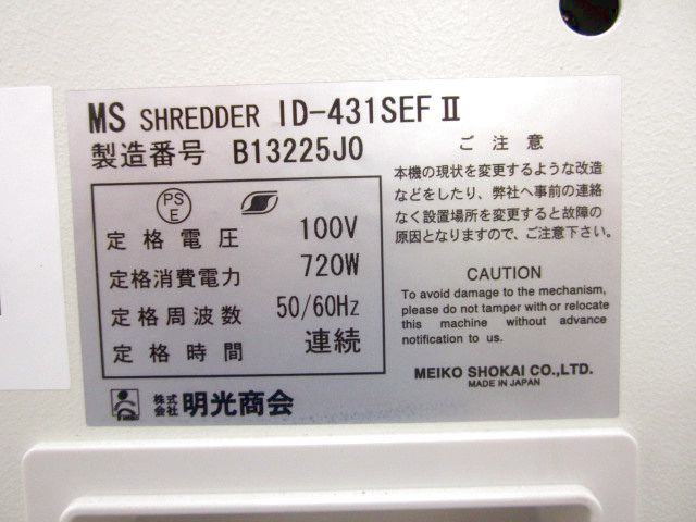 【中古】 MS-ID431SEFII 明光商会 シュレッダー 157816