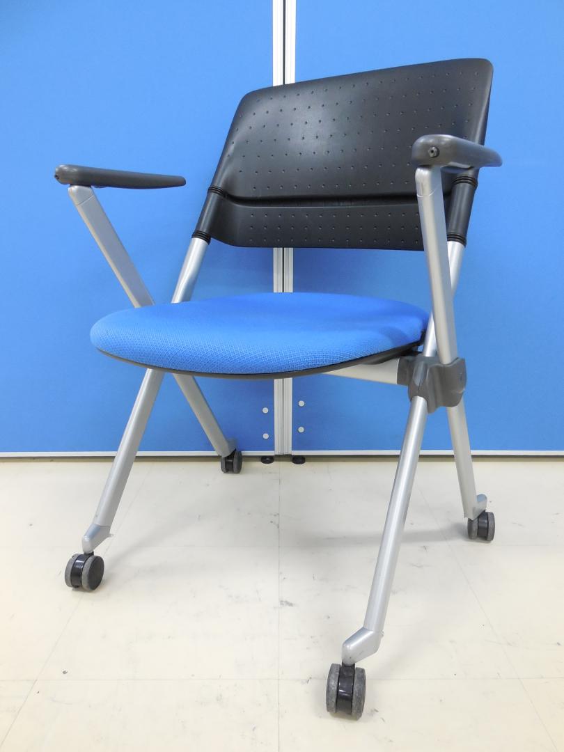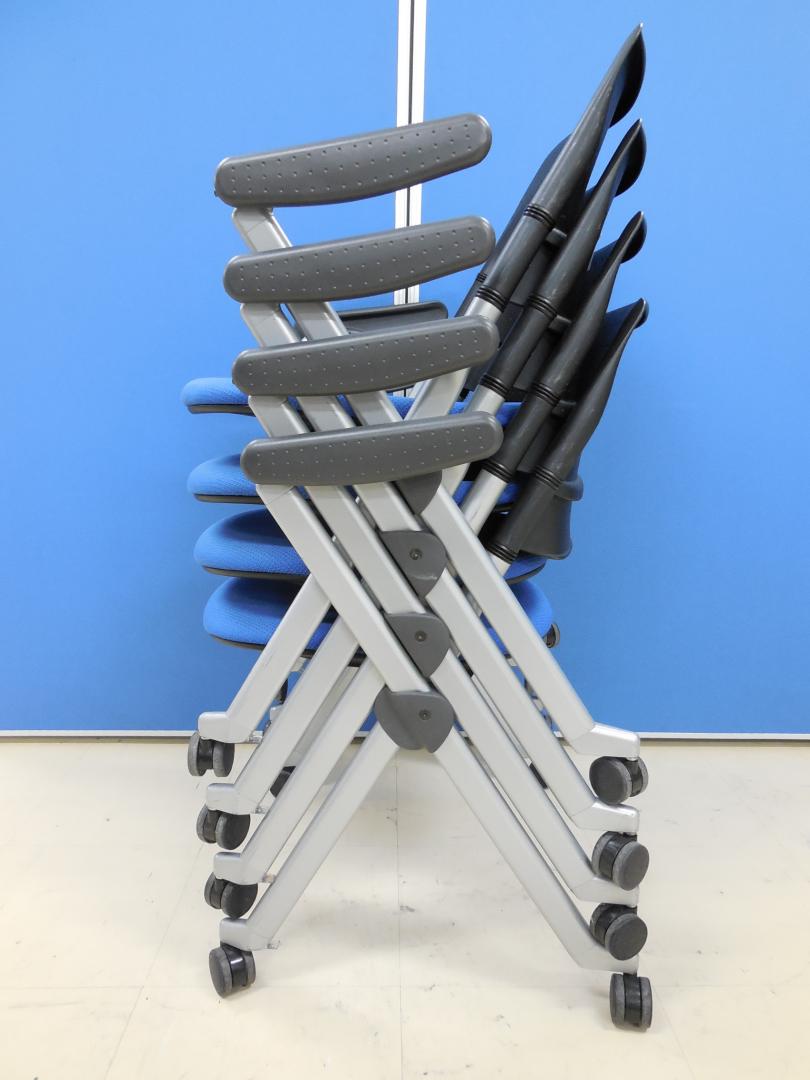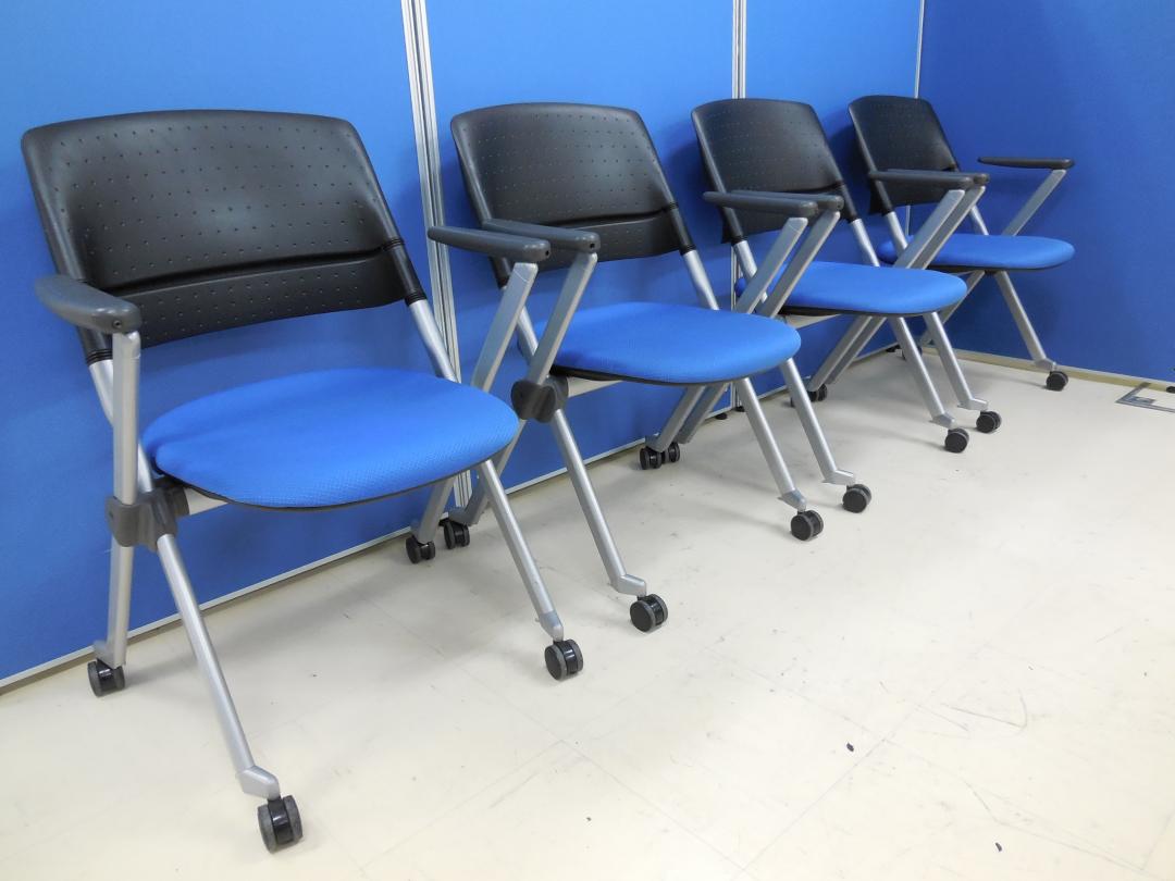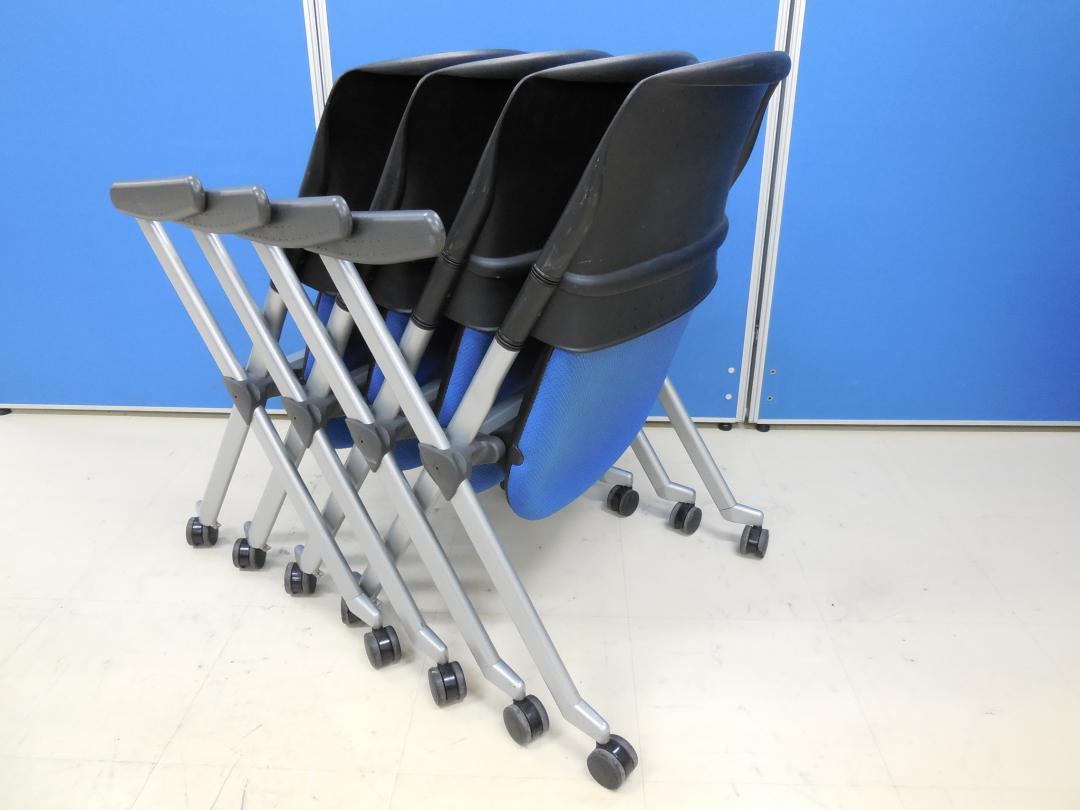 【お得な4脚セット!】オカムラ製 LITA(リータ)チェア 綺麗なブルーカラー■使用後の面倒な片づけも垂直・平行と2種類の収納でお手軽に!【スタッキング】【ネスティング】- 足立・葛飾店