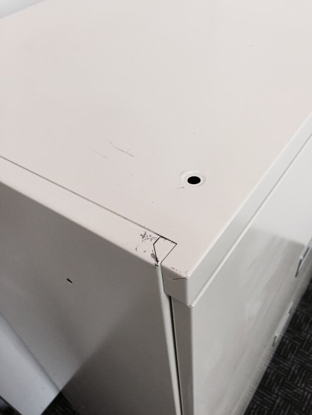 - 目立つ箇所あり傷・凹みが多数、深い傷・凹みが一部ある。(例、天板、正面、背部、サイド部分にある。)